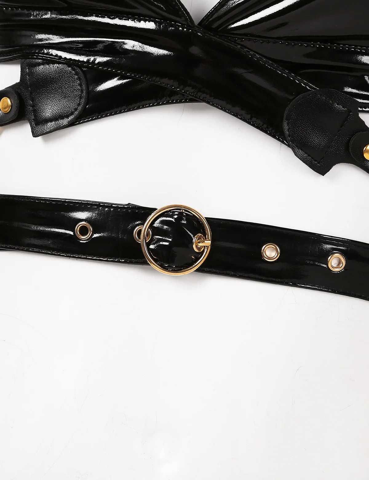 Комплект включает в себя: 1 женский бюстгальтерСостояние: Новый с биркойМатериал: Лакированная кожаЦвет: Черный (как показано на фотографии)