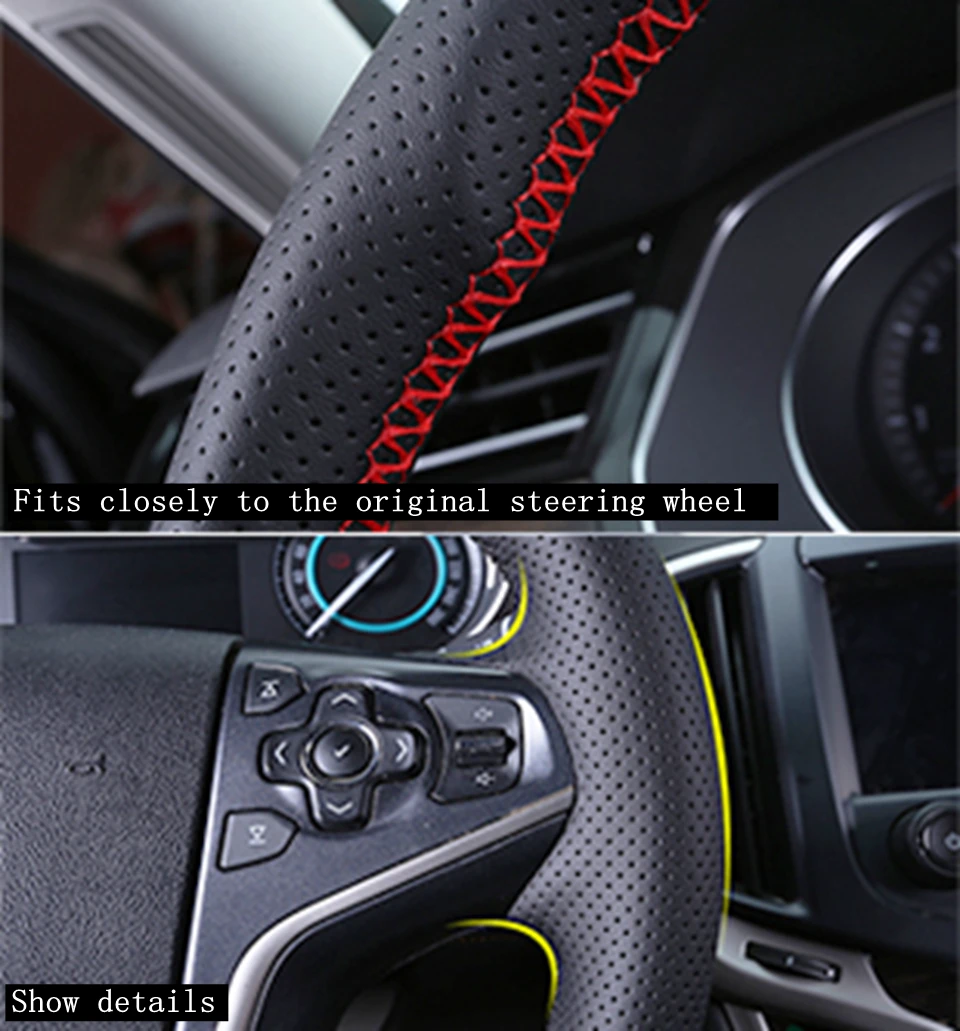 DIY сшитый вручную черный чехол рулевого колеса автомобиля из искус...