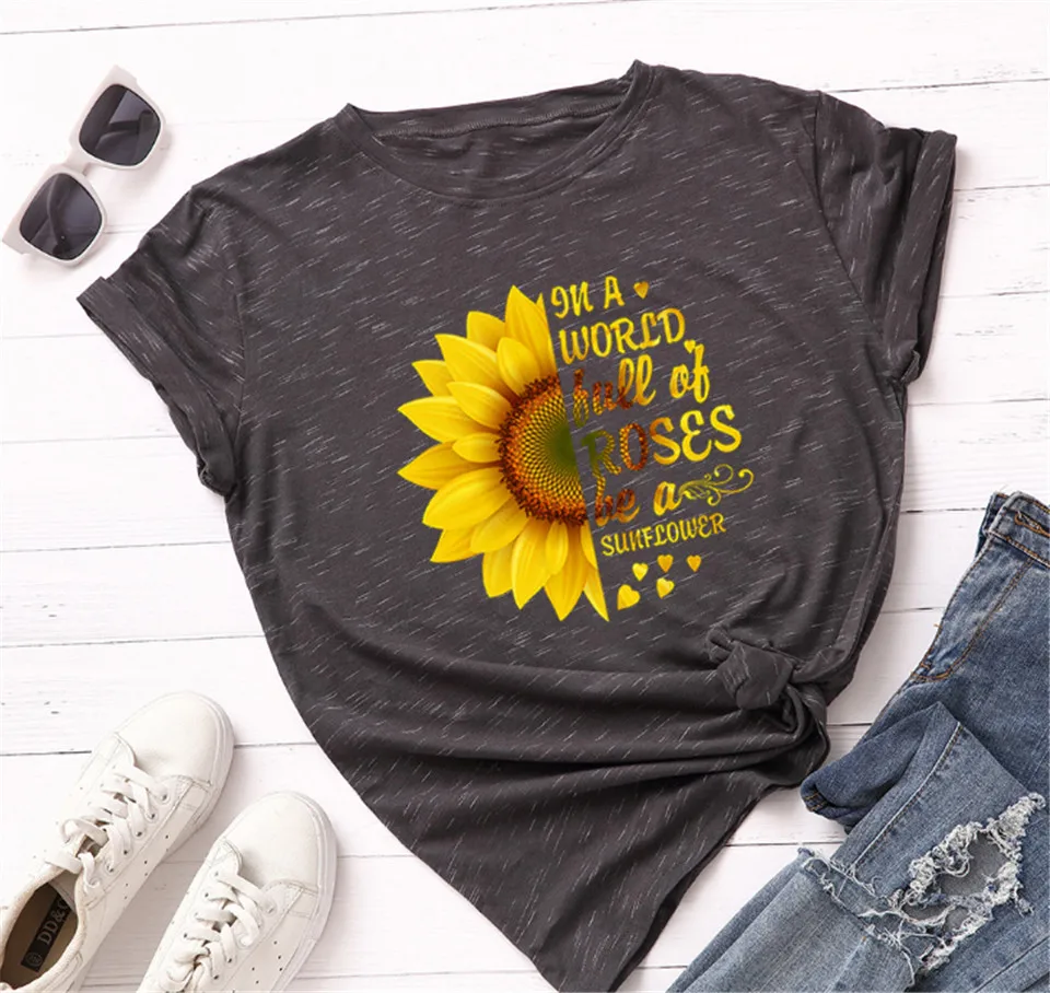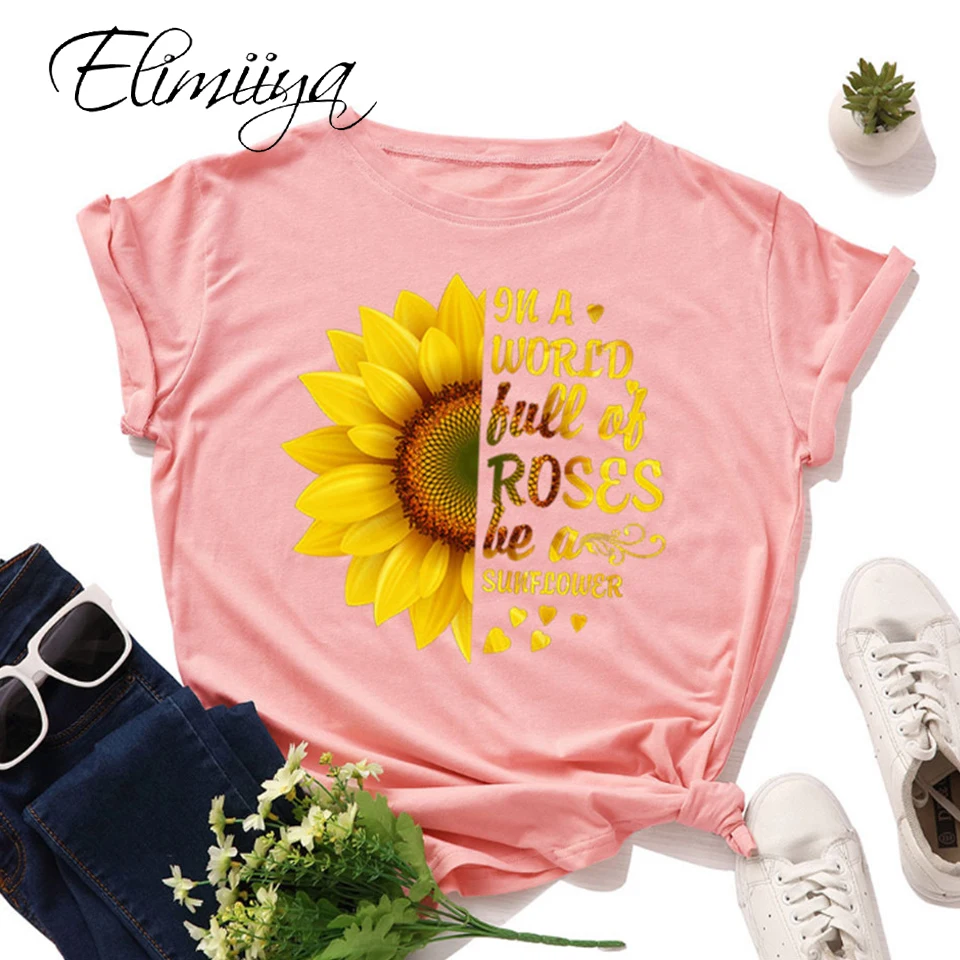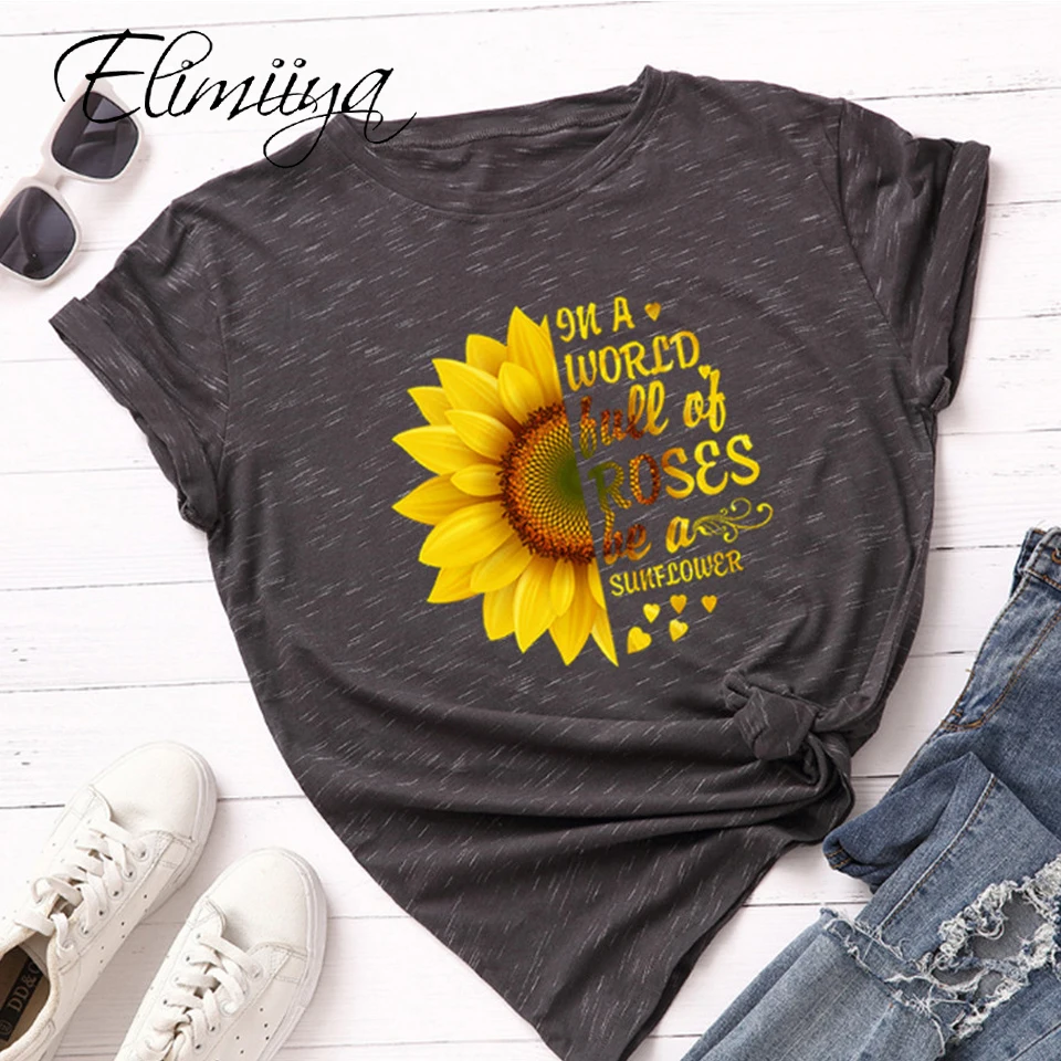 Женская футболка с коротким рукавом elimiya, летняя футболка из хлопка с круглым вырезом и цветочным принтом, футболки оверсайз размера плюс