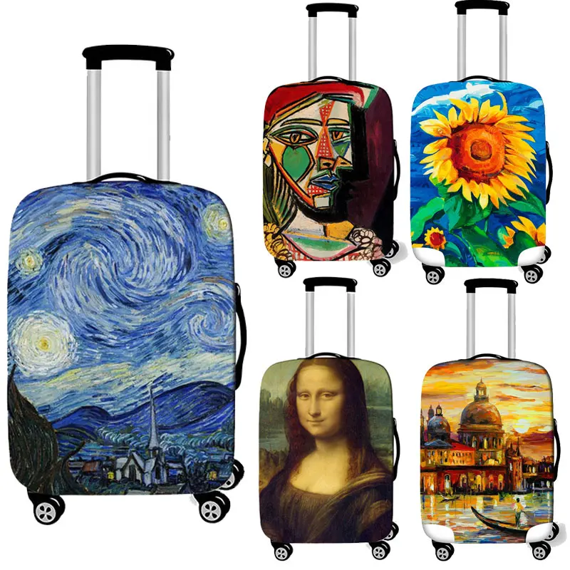 Чехол для багажа Van Gogh Art с масляной росписью/Janpan Wave / Mona Lisa, защитный чехол, эластичный чехол для костюма, чехол для тележки с защитой от пыли