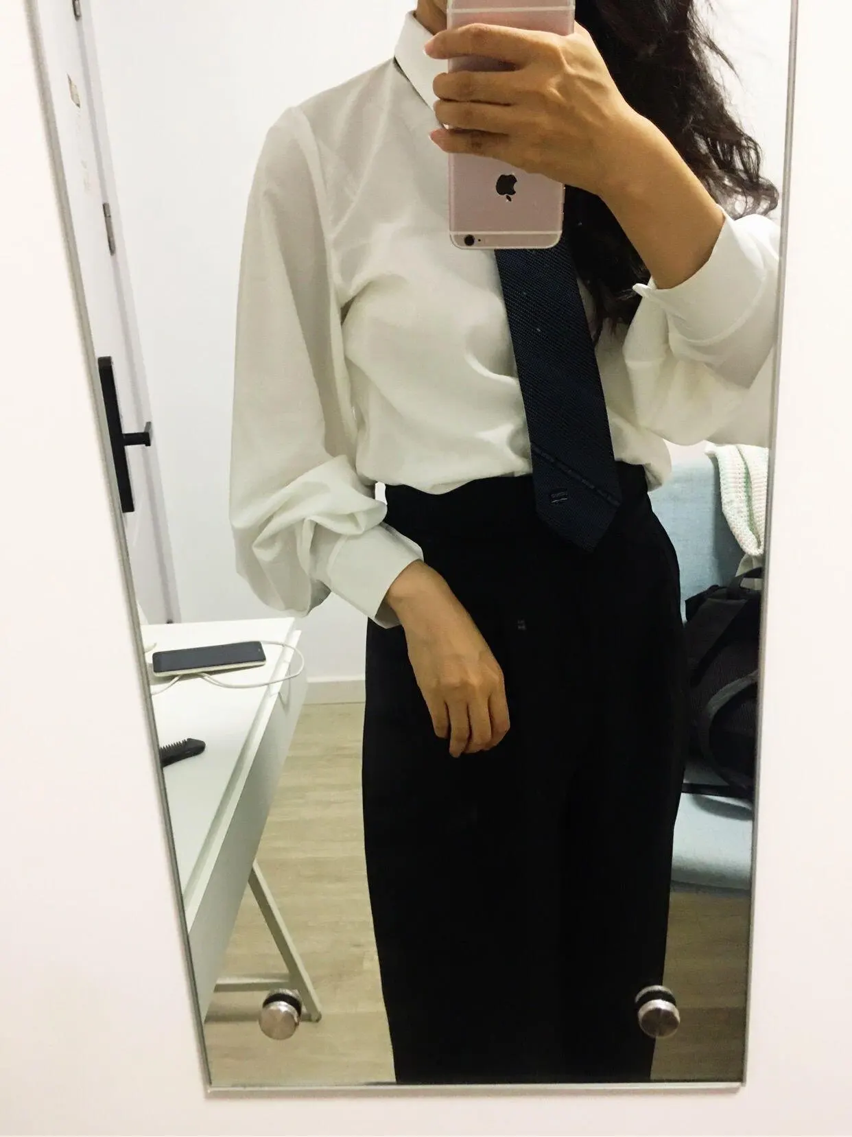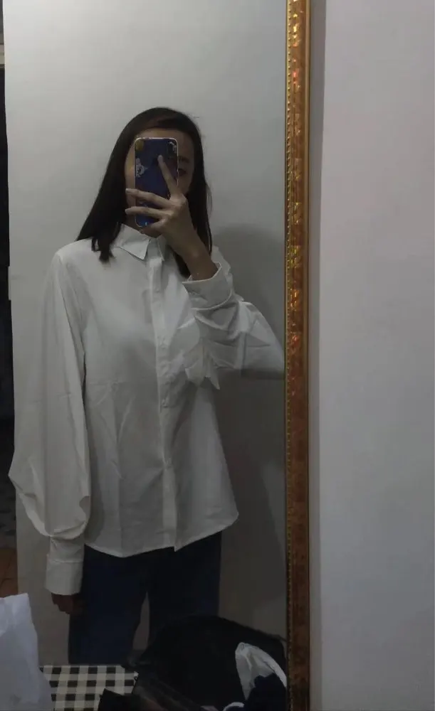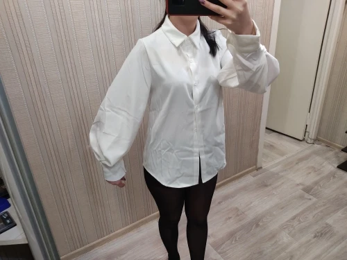 блузка очень классная! сто процентов как на фото. ткань с большим содержанием хлопка, не дешёвая синтетика, не электризуется, не просвечивает. швы выполнены на 5+, нитки нигде не торчат, все края обметаны качественными толстыми нитками. ношу верх 44 размера. рост 168, ог 94. взяла хl и подошло идеально. длина рукава идеальная, плечи тоже сели точно по фигуре. продавец положил ещё подарок. я просто счастлива от этой покупки, она даже немного превзошла мои ожидания. в российском магазине затакую бы не меньше трешки просили (в 2021 году.) выглядит как дорогое фабричное изделие, а не Китай. ещё и доставка быстрая, дней 10. каждый этап доставки отслеживался и приходили уведомления на телефон. большое спасибо!