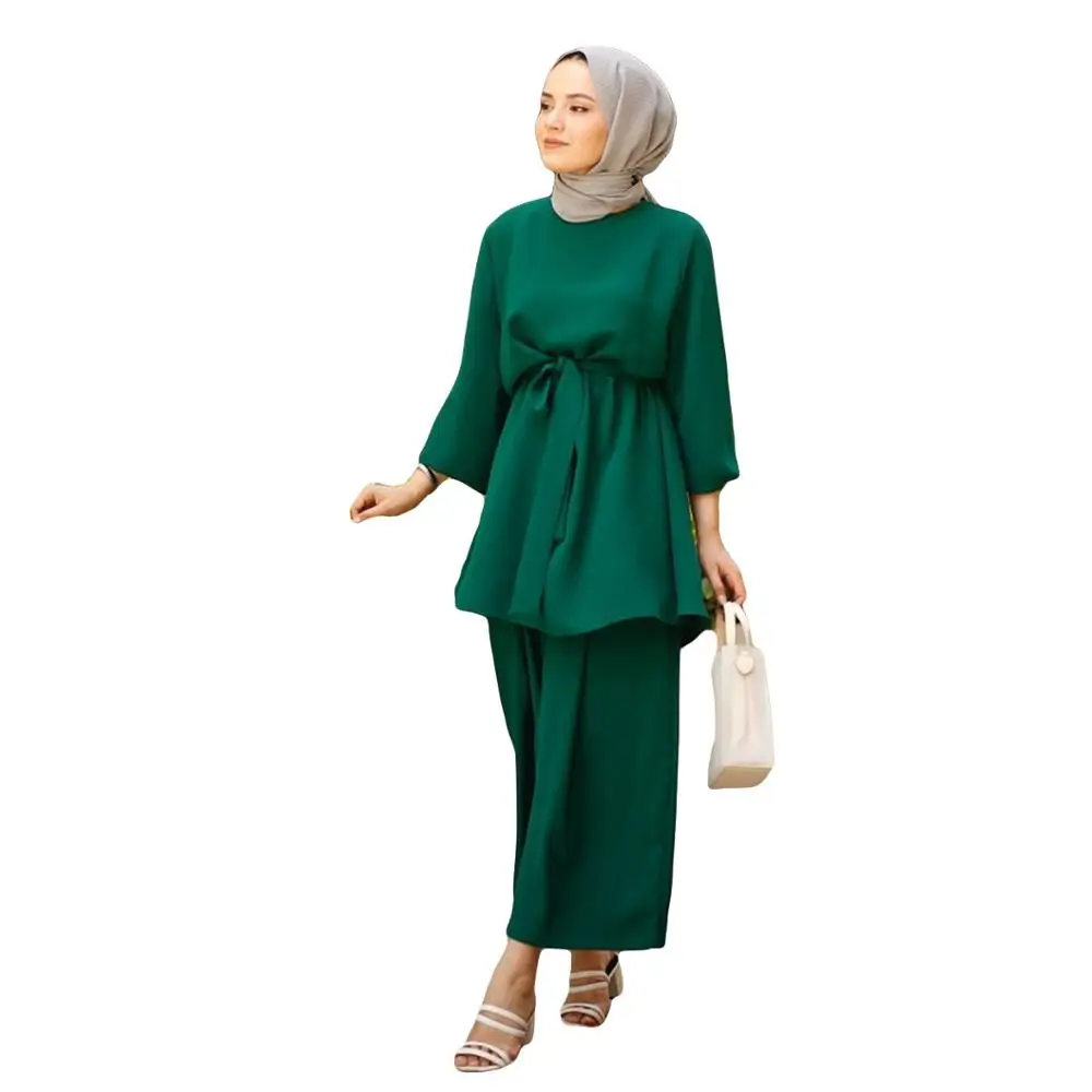 Мусульманский комплект из 2 предметов; Летний комплект из топа и брюк в Дубае; Женский кафтан; Турецкий хиджаб; Исламское платье; Рамадан; Ropa
