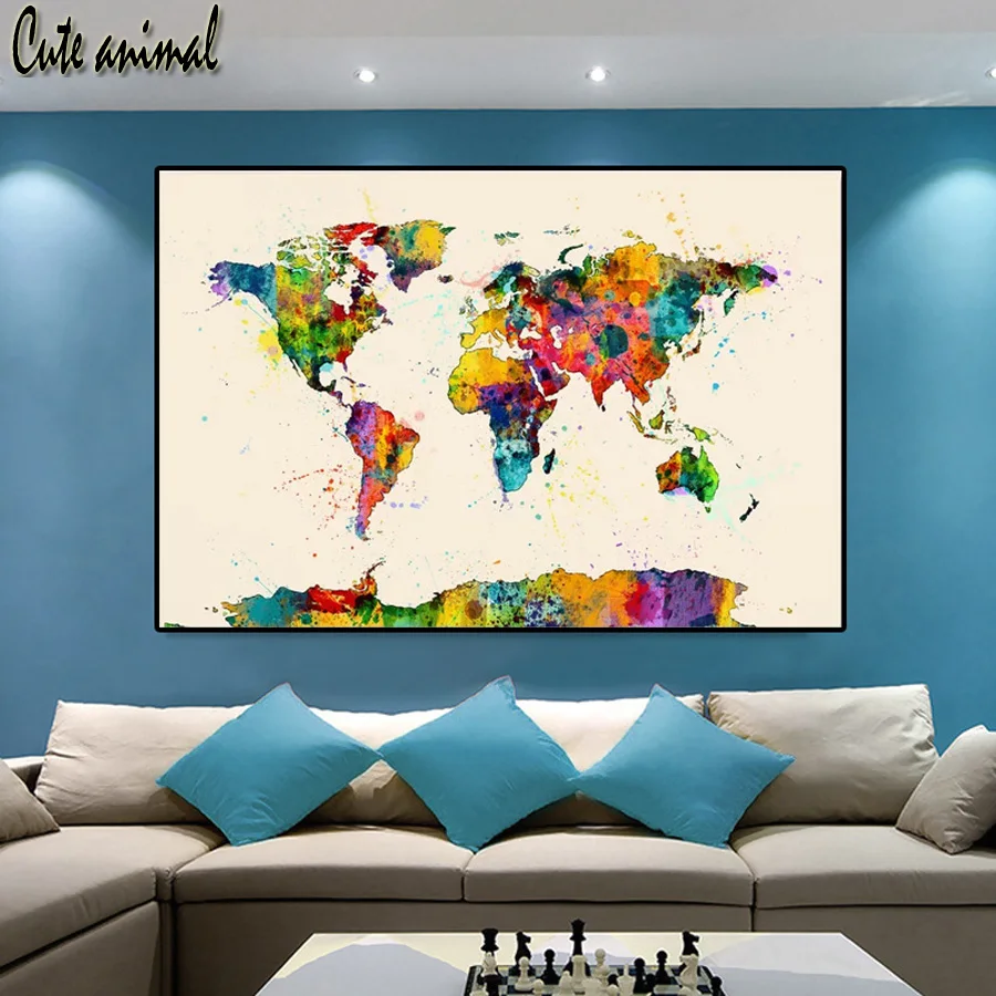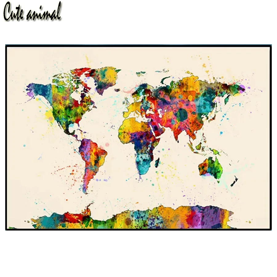 Алмазная 5d картина сделай сам с цветной картой мира, алмазная вышивка сделай сам с квадратными стразами, мозаика, рисование стразы, украшение для дома