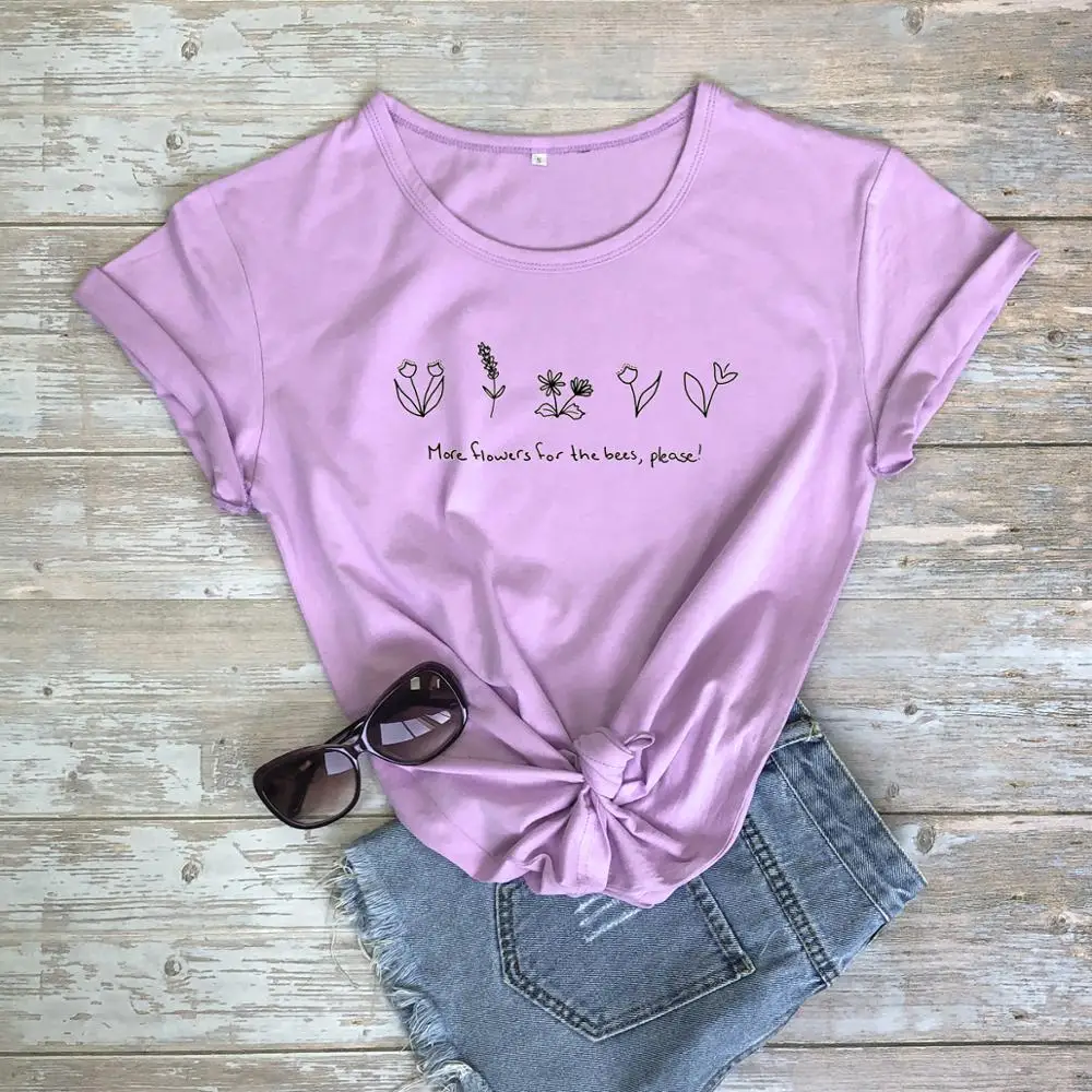 Пожалуйста, больше цветов для пчел! Футболка из 100% хлопка в эстетике Унисекс Женская tumblr Повседневная модная забавная футболка с графическим принтом Топ Футболка