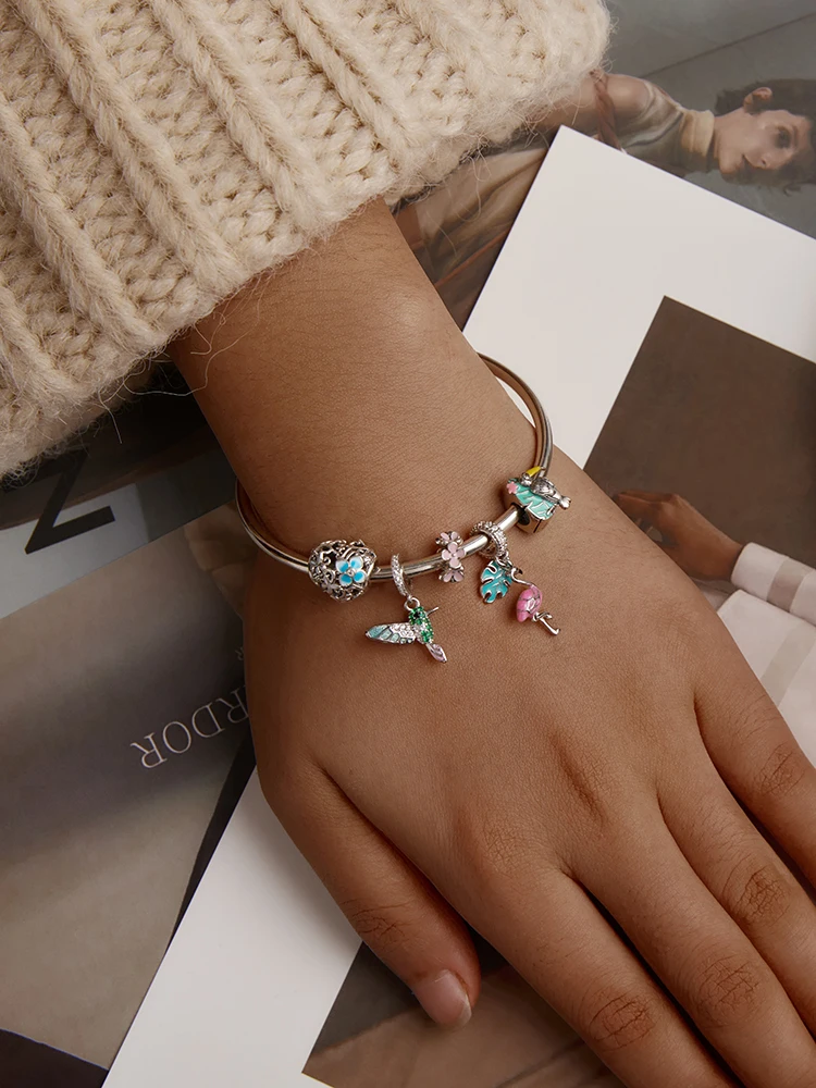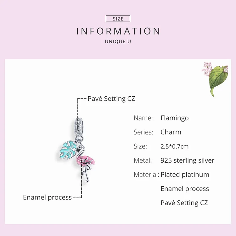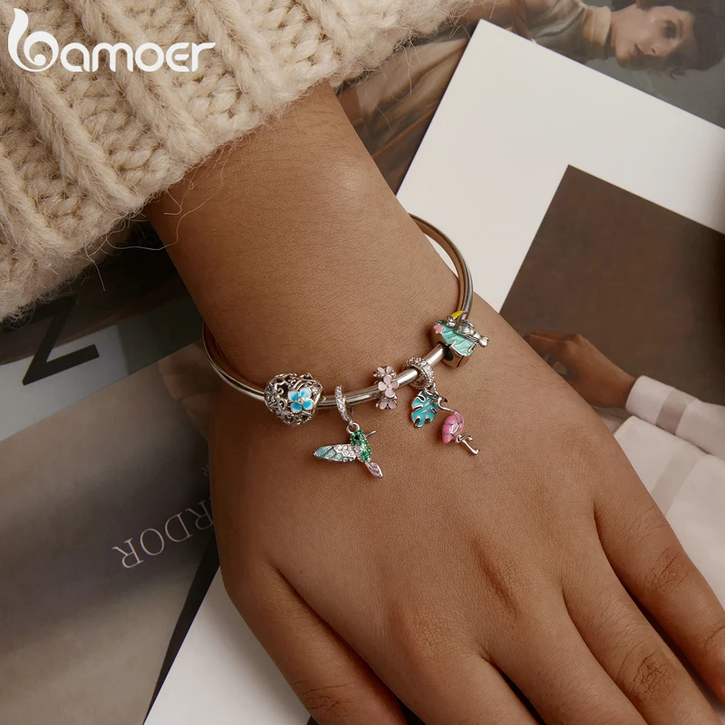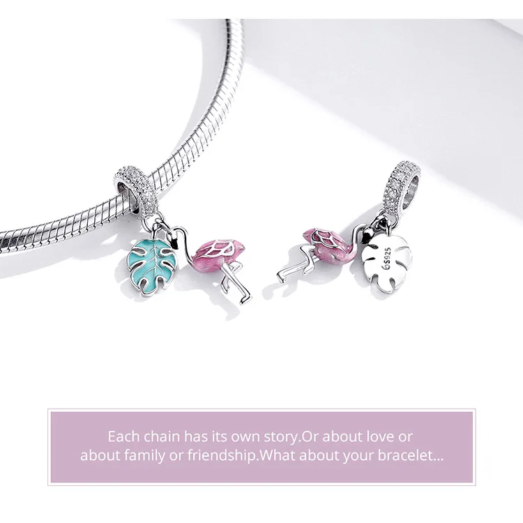 Шармы bamoer для браслета или ожерелья 3 мм из серебра 2020 пробы, с розовой эмалью, подвеска Фламинго, BSC277, лето 925
