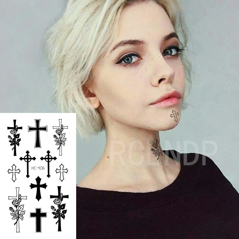 Водостойкая временная татуировка-наклейка маленькая крест Роза на палец шеи руки флэш-тату поддельные татуировки для девочек женщин мужчин