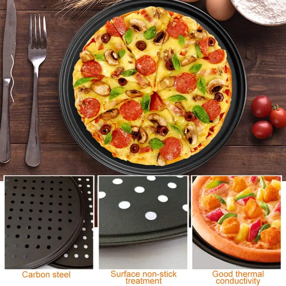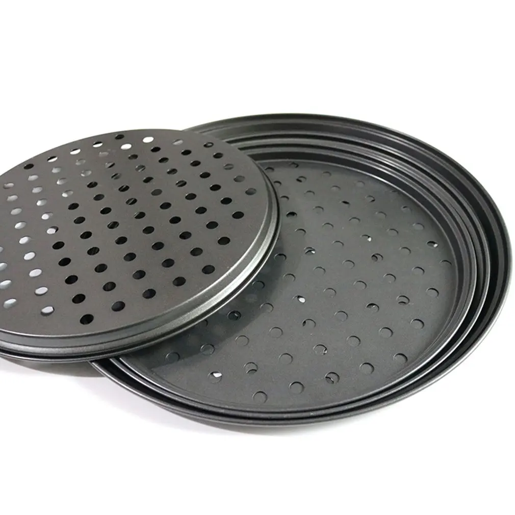 Форма для выпечки пиццы, черная, из углеродистой стали, с отверстиями