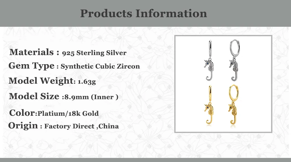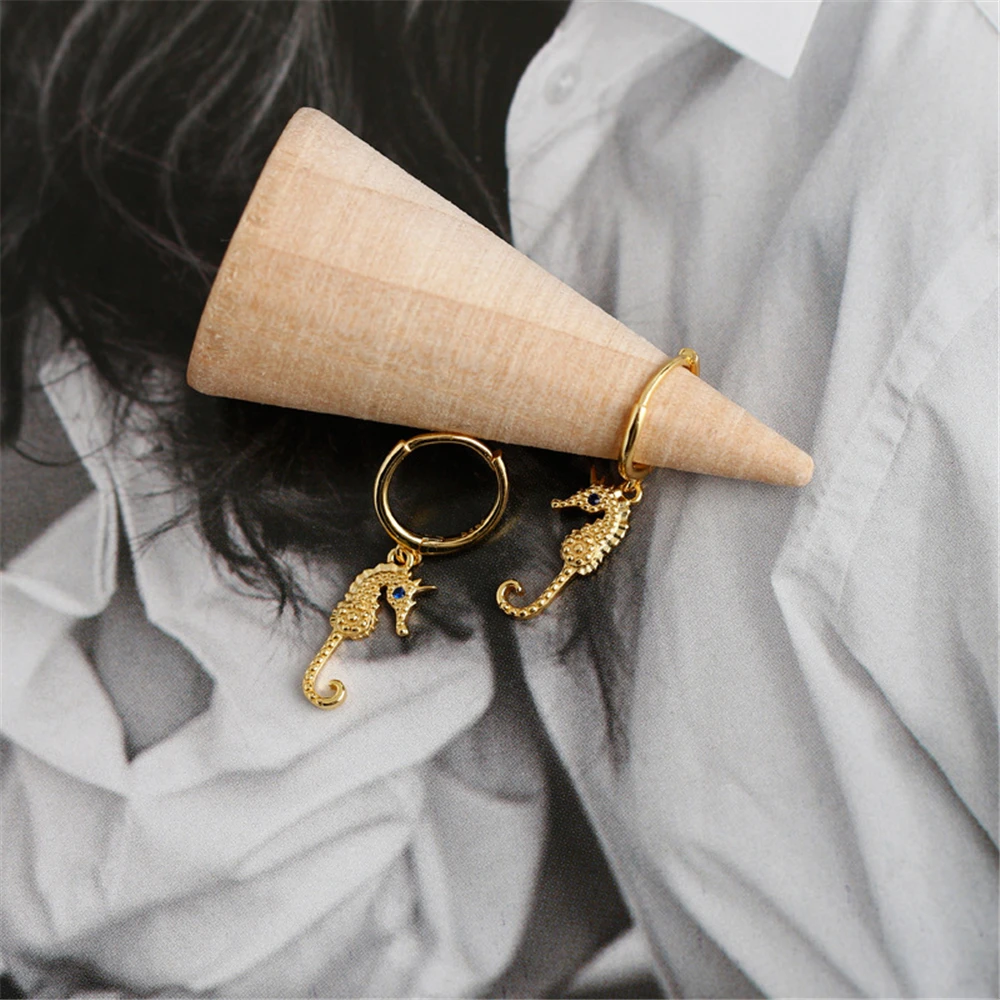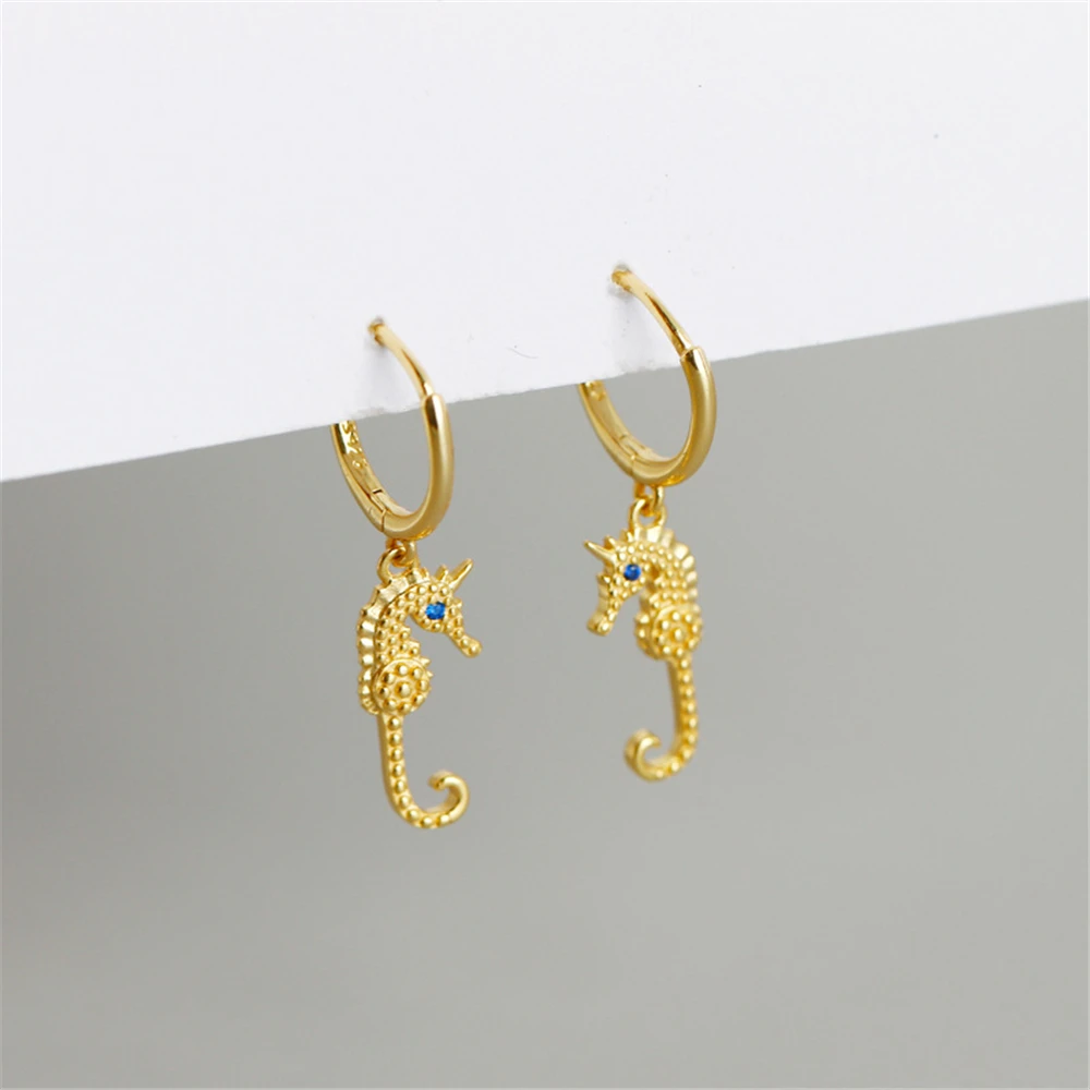LKO Настоящее серебро 925 пробы милые серьги-кольца с морским коньк...