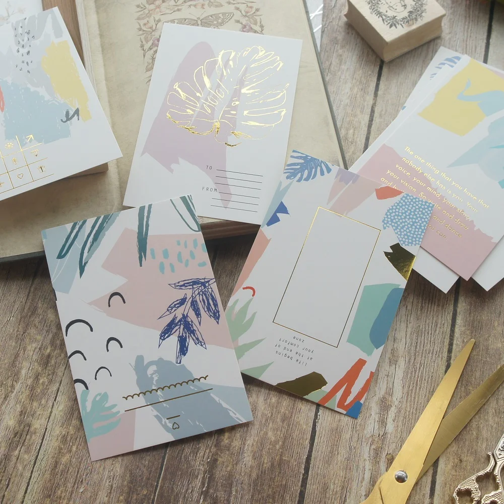 9,3*14,3 см 12 шт. золотые розовые синие абстрактные картины красивые слова дизайнерские Открытки Подарочные поздравительные открытки подарочные открытки приглашение вечерние ринку