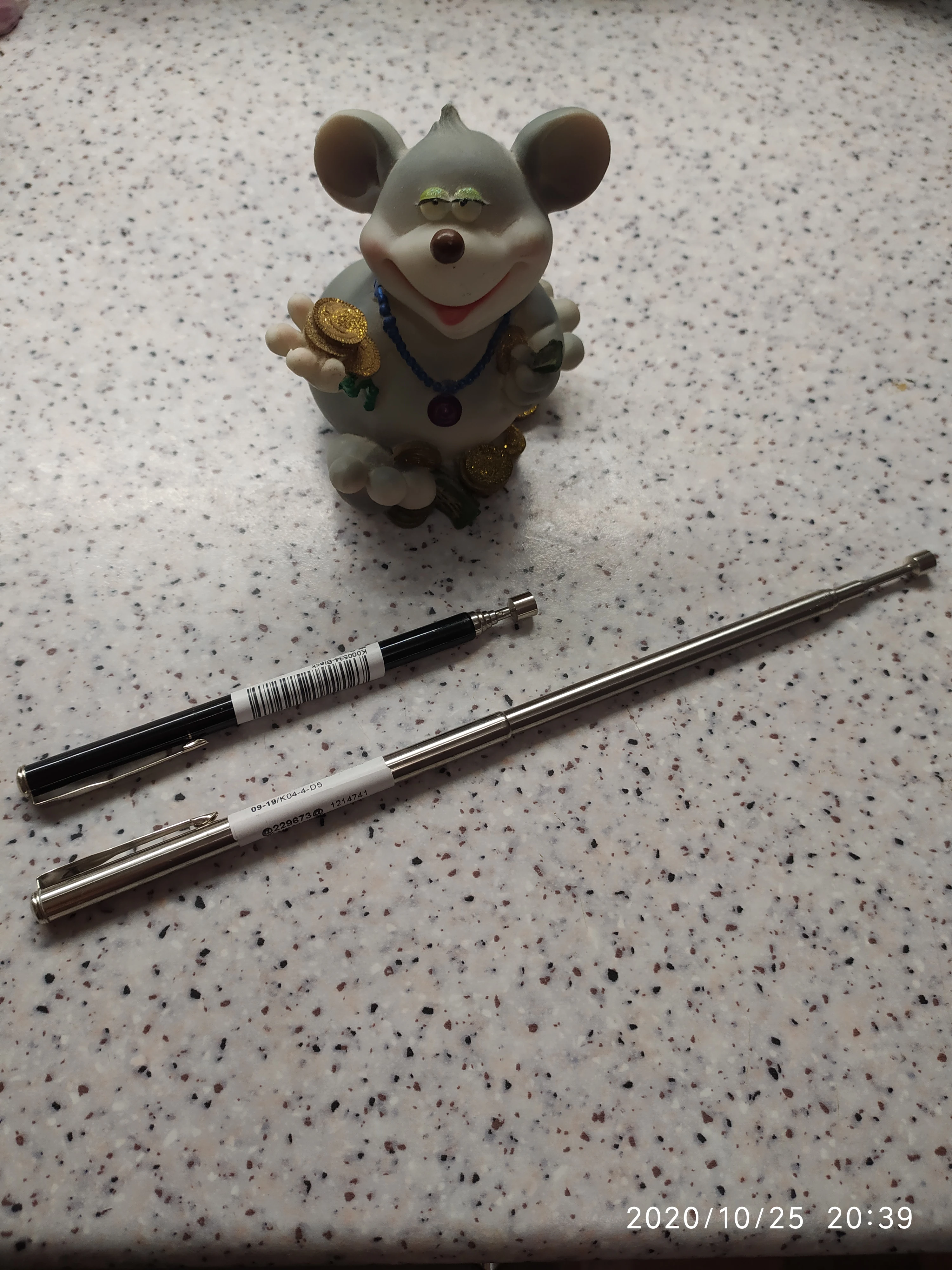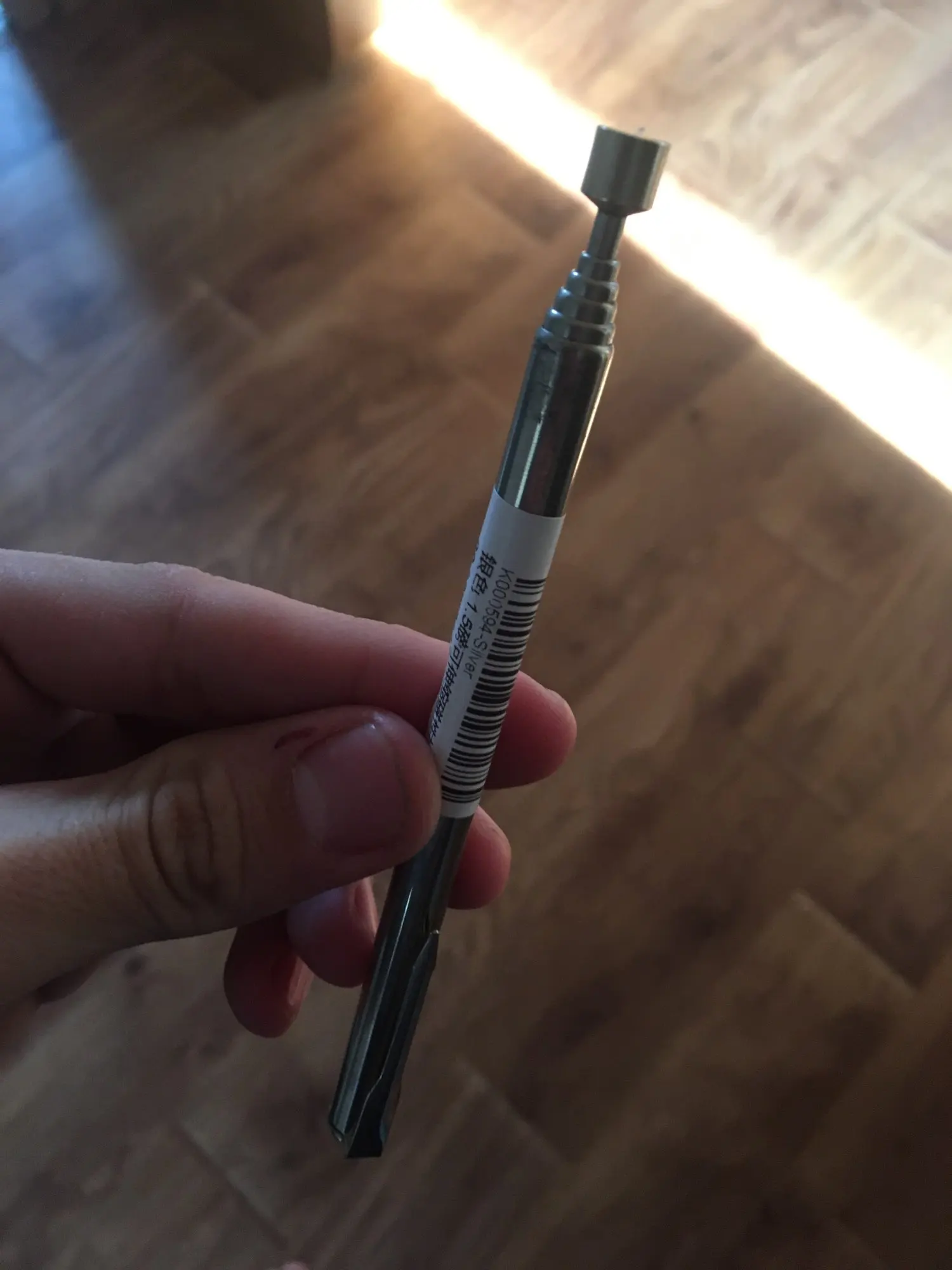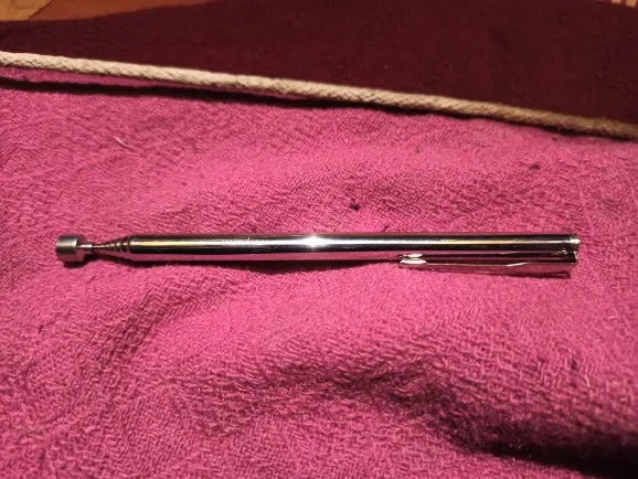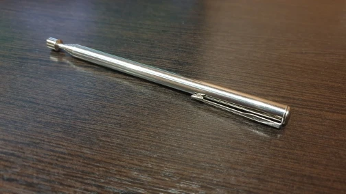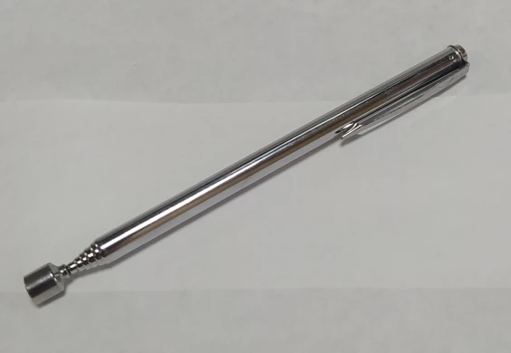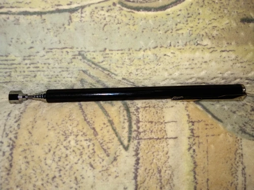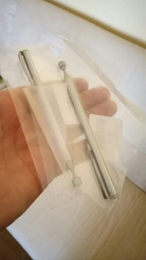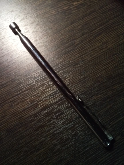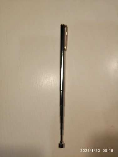 Заказ шёл довольно долго. Месяца два. В итоге обнаружил его у себя в почтовом ящике. Незамысловатое телескопическое устройство с магнитом на конце. Магнит не очень сильный. Достать закатившийся болт или гайку подойдет. Сам девайс достаточно легкий. В хозяйстве пригодится)