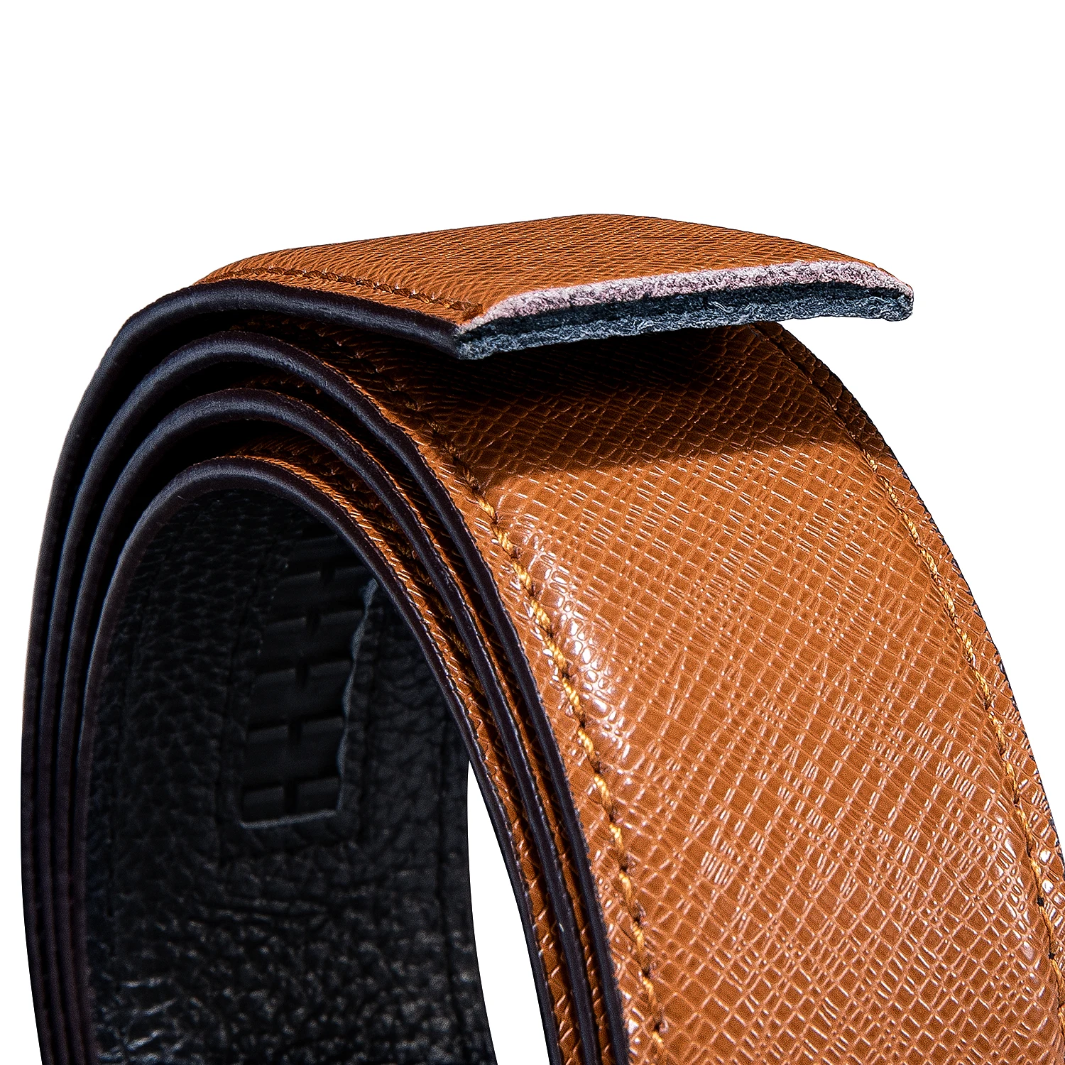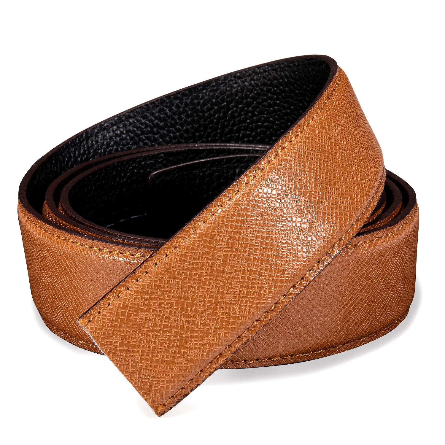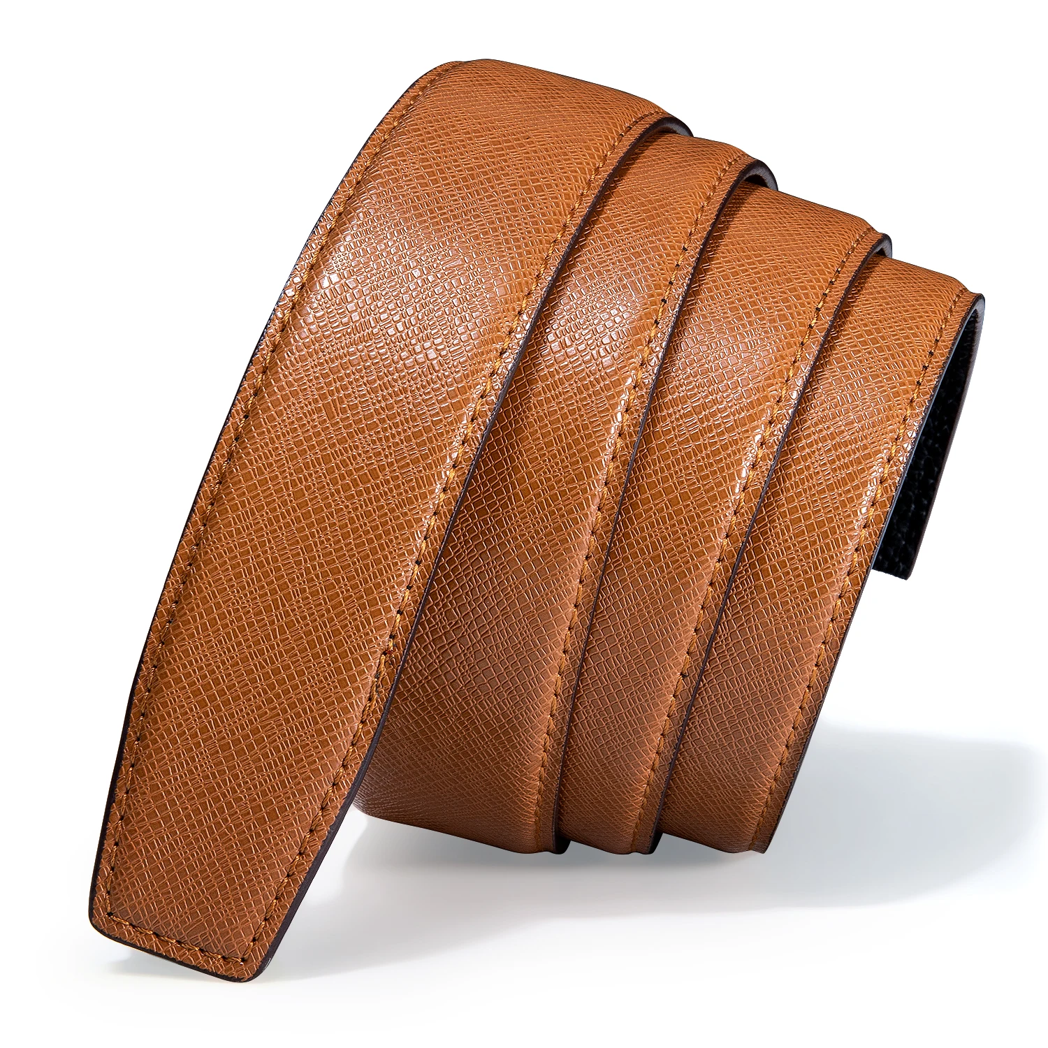 Ремень из натуральной воловьей кожи Hi-Tie, сменные ремни для автоматической пряжки без пряжки, ширина 3,5 см, мужские коричневые деловые ремни