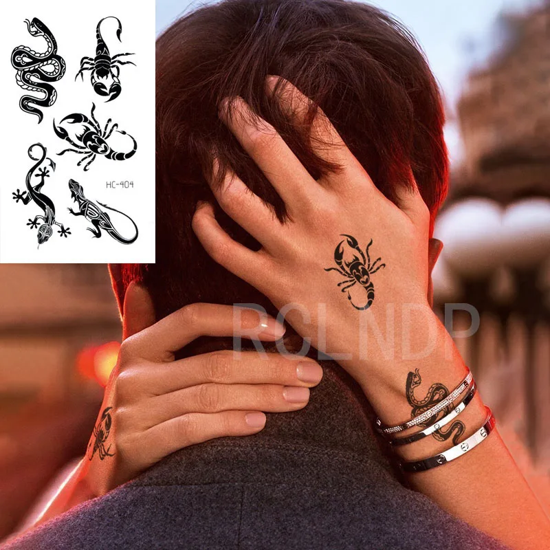 Тату-наклейка Временная водостойкая, змея, Скорпион, животное геккон, флэш-тату, искусственное тату на руку, боди-арт для женщин и мужчин
