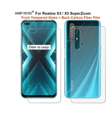 Для Realme X3 / SuperZoom 6,6 "1 комплект = мягкая задняя пленка из углеродного волокна + ультратонкое защитное стекло премиум класса для переднего экрана