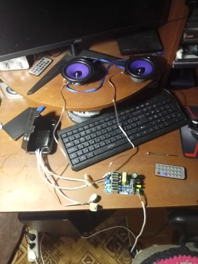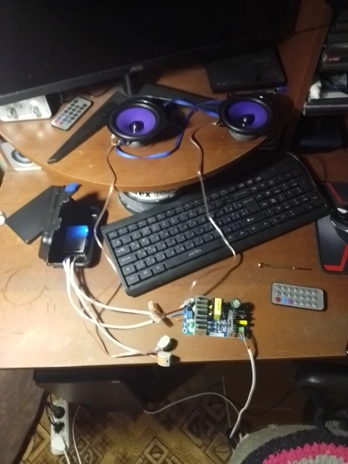 Собрал схему и проверил наконец свои покупки: усилок с ви-фи, понижайку выпрямитель на 24 В и собственно динамики. Для своих размеров очень достойные динамики, 35 ватт конечно не выдают но ватт 20 точно есть. Сорокаваттный усилок в защиту уходит при максимальной громкости, эти динамики на такую мощность не рассчитаны.