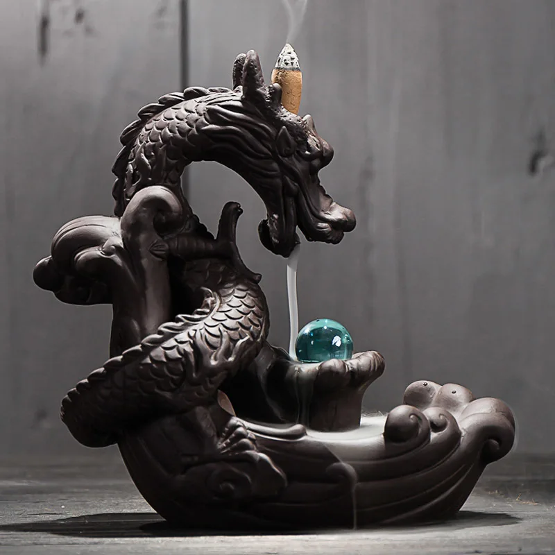 Керамический обратный поток курильница для благовоний, креативный домашний декор, держатель для благовоний в виде дракона, курильница с хрустальным шаром + 20 шт. ароматических конусов
