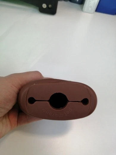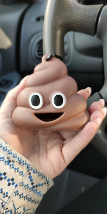 Как прорезиненный пластик. Его плотный и жесткий, поэтому он определенно прослужит всю жизнь. Довольно большой. Размер моей ладони. Я получил его, потому что я думал, что он веселый. Безусловно, можно поймать глаза людей.