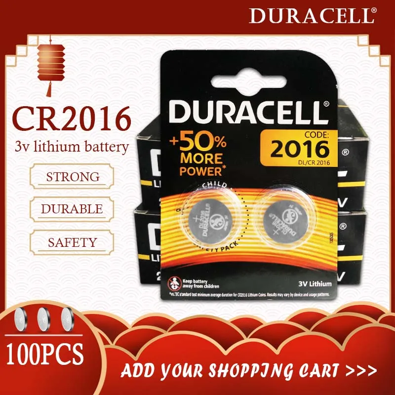 100 шт. оригинал для DURACELL CR2016 кнопочный аккумулятор 3 в литиевые батареи для часов игрушка компьютерный калькулятор управление DLCR 2016