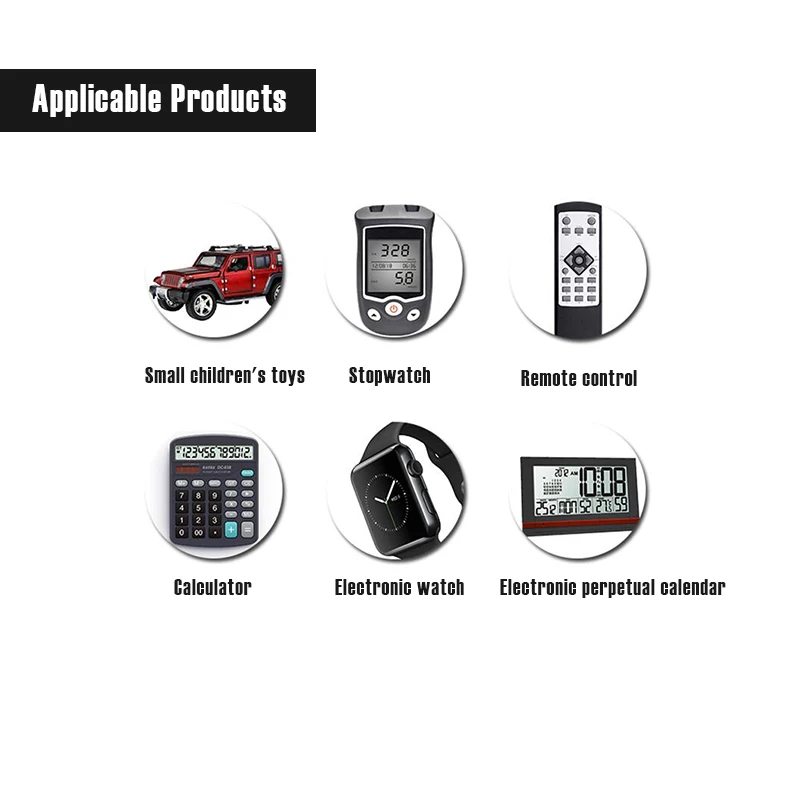 Широко используется:Он широко используется в часах, фонариках, калькуляторах, электронных подарках, электронных весах, компьютерах, счетчиках голоса, слуховых аппаратах, электронных продуктах, игрушках, фотоаппаратах, инструментах, медицинских приборах, мигающих лампах, иммобилайзеры, пульты дистанционного управления и т. Д.