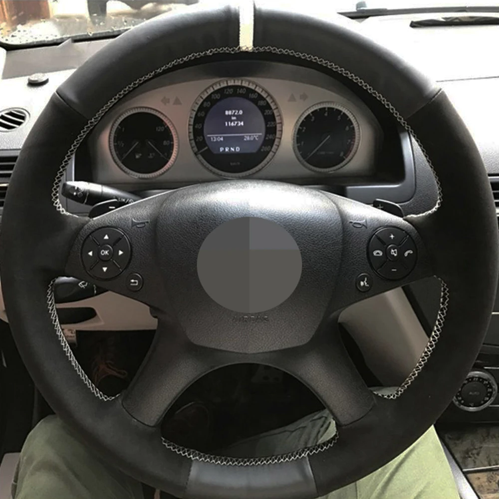 Для Mercedes-Benz C280 C230 C180 C200 C300 W204 C-Class 2007-2010 ручная сшивка чехол рулевого колеса автомобиля износостойкая черная замша