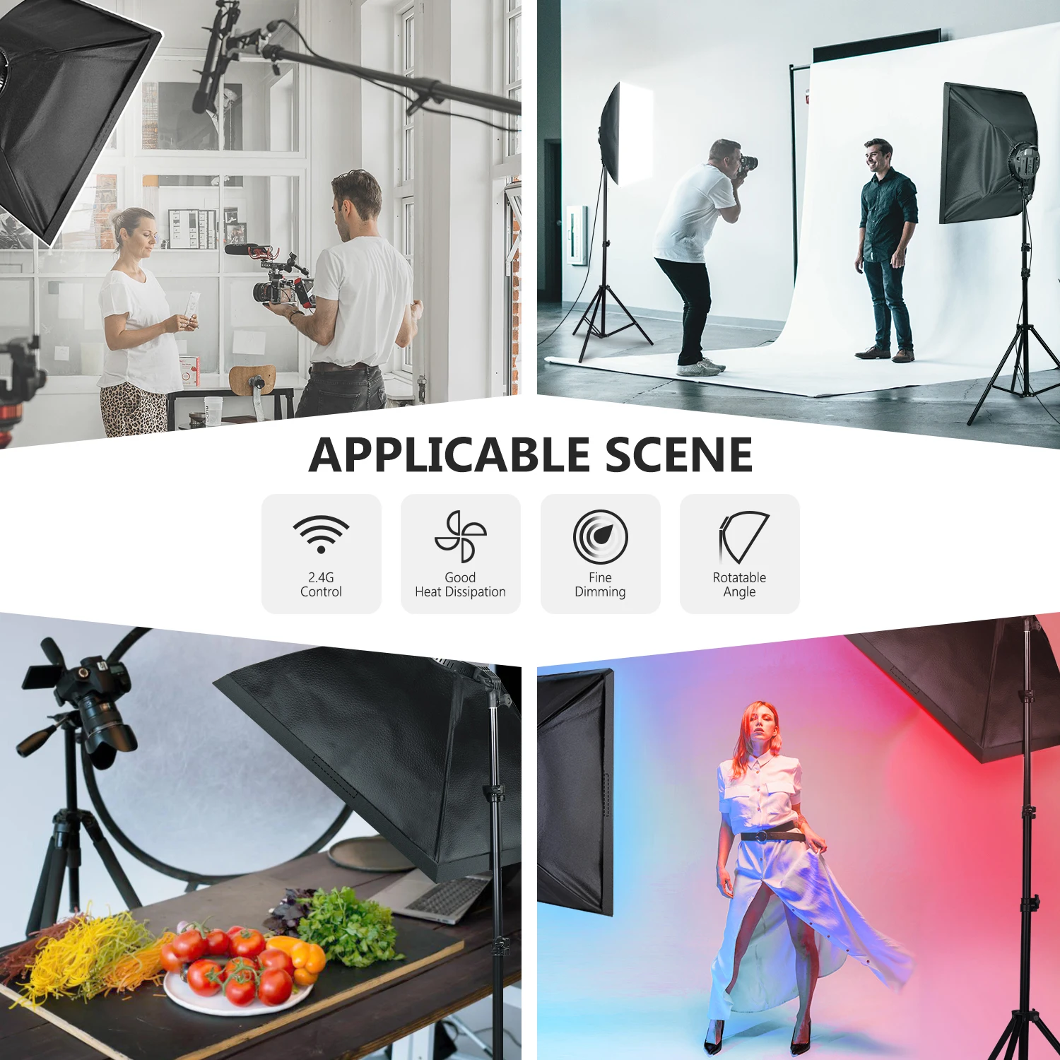 Комплект для освещения софтбокса: благодаря 168 светодиодных ламп, Регулируемая Цветовая температура (3200K-5600K) и регулируемой яркостью (10%-100%), это осветительный набор идеально подходит для портретной съемки/фотографической продукции, видео для YouTube, домашнюю студию и т. д. Также поставляется с 2,4 GHz дистанционное и шесть цветовых фильтров (красный, желтый, голубой) для дополнительного удобства и многое другое творческая работа