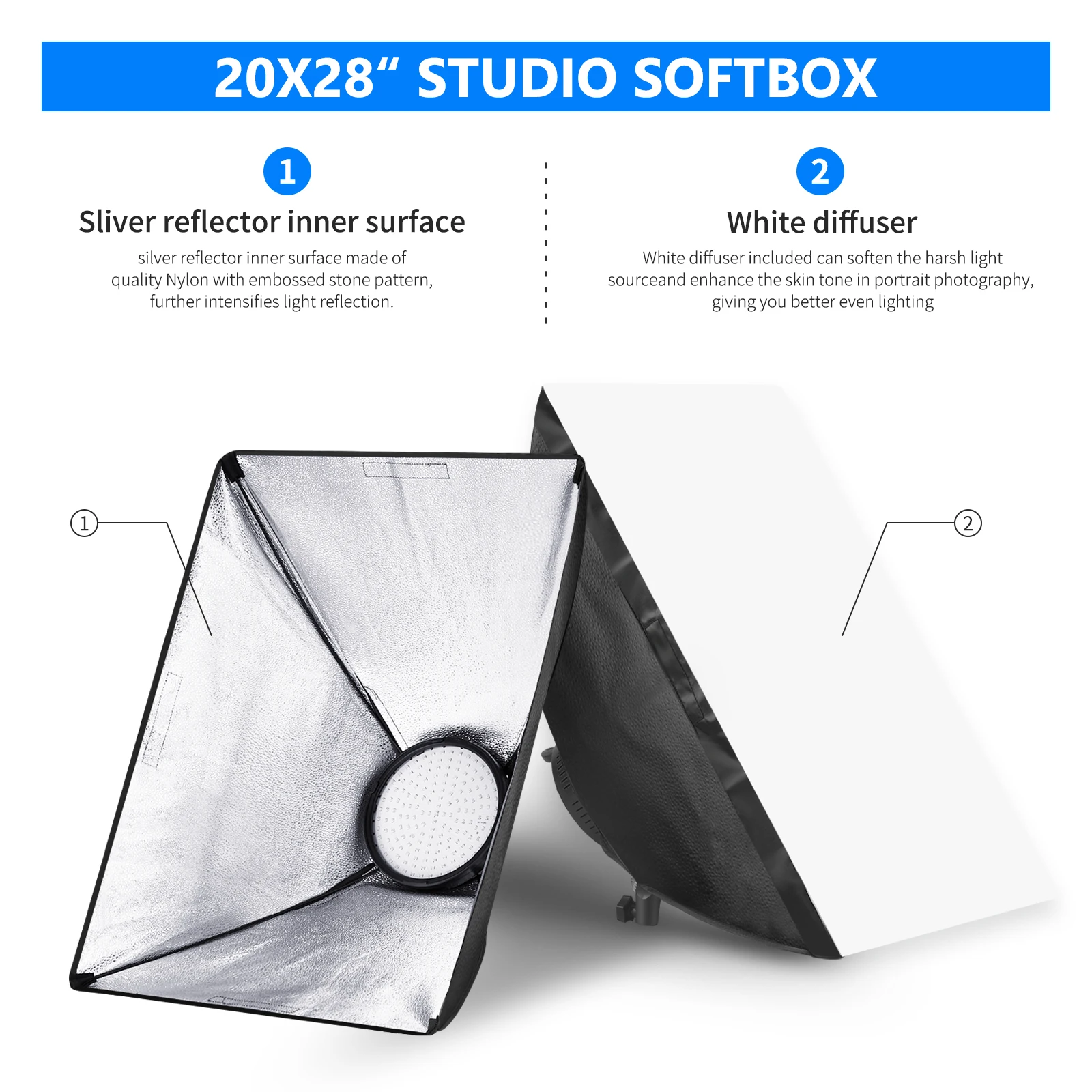 Студийный софтбокс: нейлоновый тканевый чехол для софтбокса Отражательная серебряная интерьеры и белая насадка для рассеивания света смягчает свет и создает более естественный, равномерное освещение для улучшения портретов