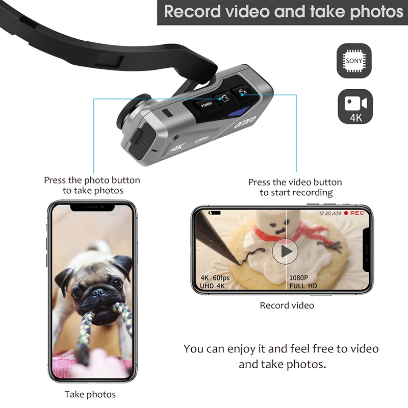 4K @ 60FPS видео является четким и гладким, восстанавливает каждый момент действия.100 Мбит/с помогает записывать более богатые детали.Объектив высокого разрешения.Отличная стерео запись.Чистый звук и тонкие изображения.