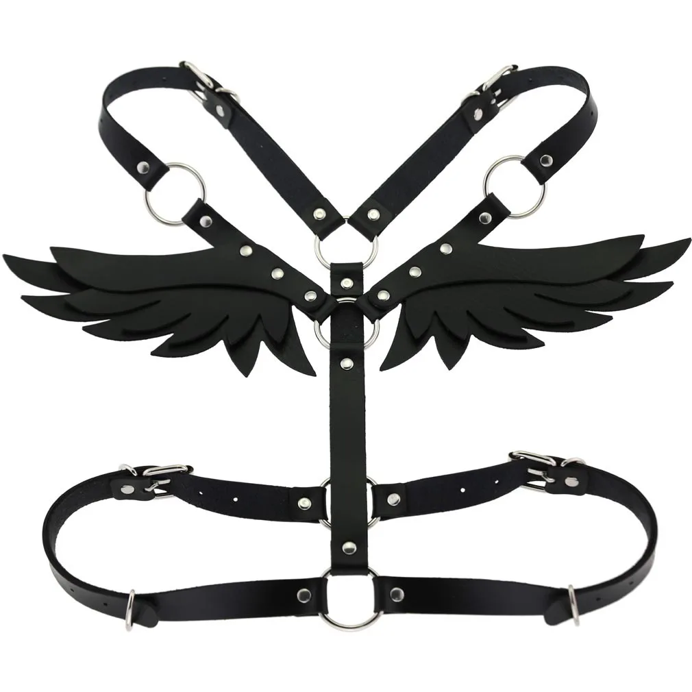 Кожаные ремни для женщин с крыльями ангела, ремень для бюстгальтера, сексуальный фетиш, черный топ для тела, пояс на грудь, женский ремень в стиле панк, гот