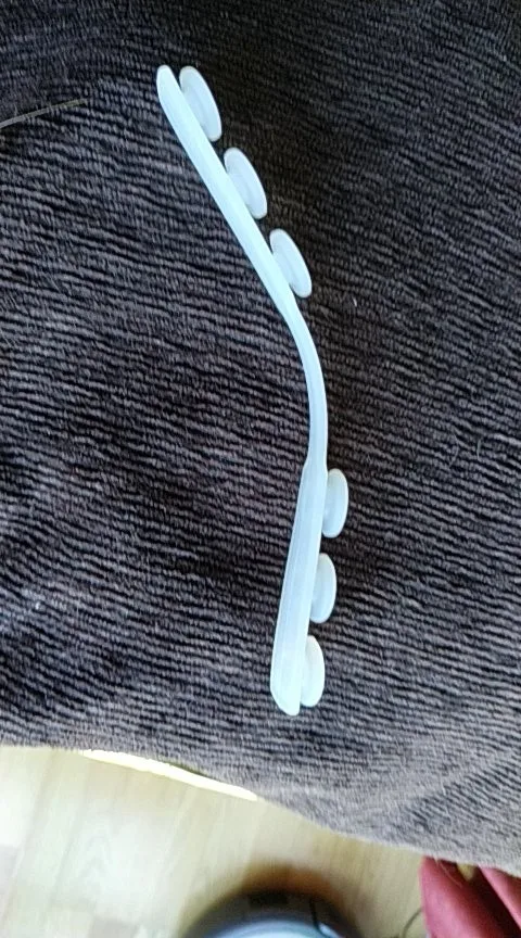 Шло почти месяц в Москву, бросили в почтовый ящик. Силикончик мягкий, без запаха. Имхо, штука бесполезная, ибо если носить как показано в описании товара (на шее, под ушами), то маска съезжает даже когда сидишь и не крутишь головой, а на затылке не получится, не хватает длины. Ну или у меня башка здоровая.