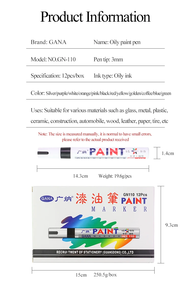 GANA GN-110 маркер масляной краски для ремонта царапин ручка для ремонта водонепроницаемое стекло/металл/пластик/керамика/дерево/шина масляная ручка