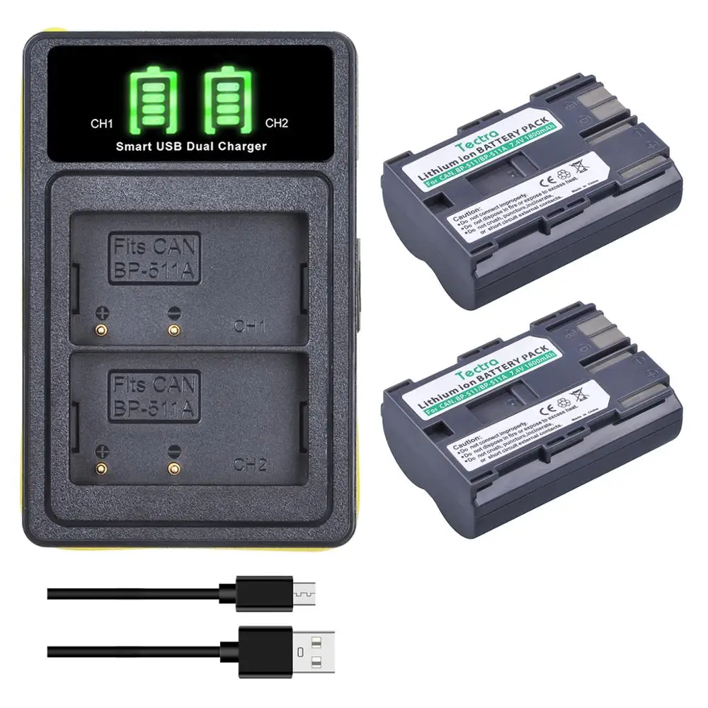 Tectra BP511A 1800 мА/ч, комплект литий-ионный батарей для совместимых с однообъективной зеркальной камеры Canon EOS 5D, 50D, 40D, 30D, 20D, 10D, D60, D30, Pro90, Pro1, G1, G2, G3, модели G5 и G6