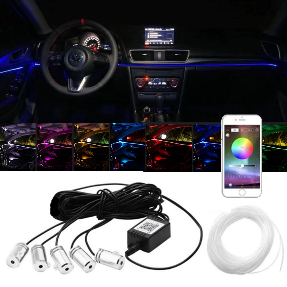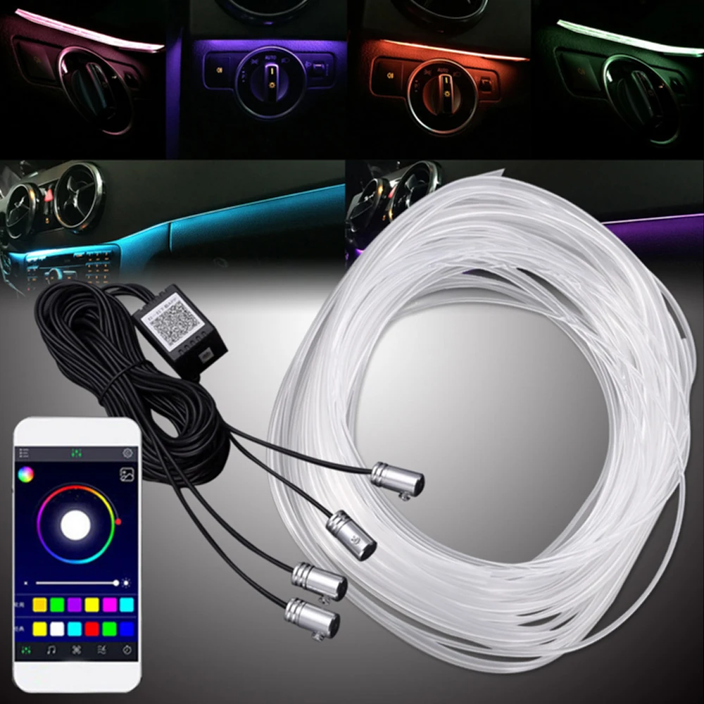 Автомобильный светильник, атмосферная лампа, приложение, дистанционное управление, RGB EL провод, декоративная лампа
