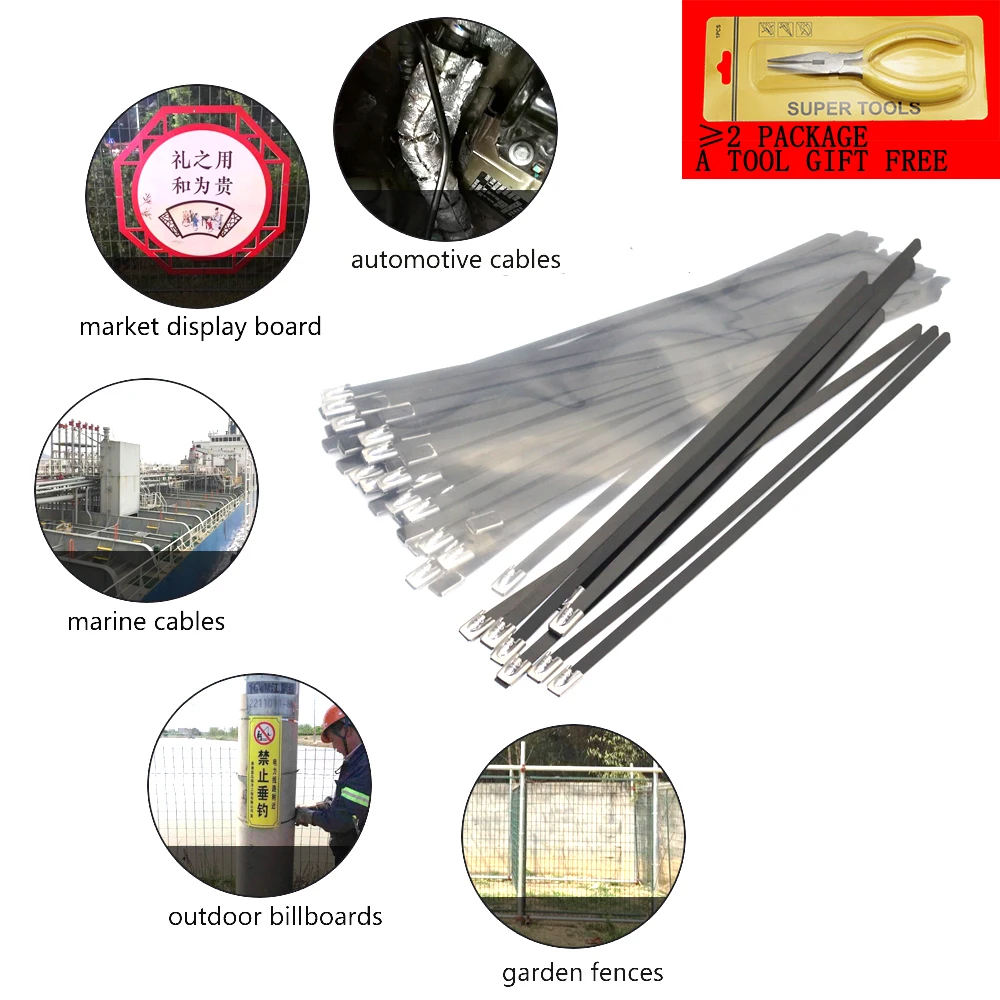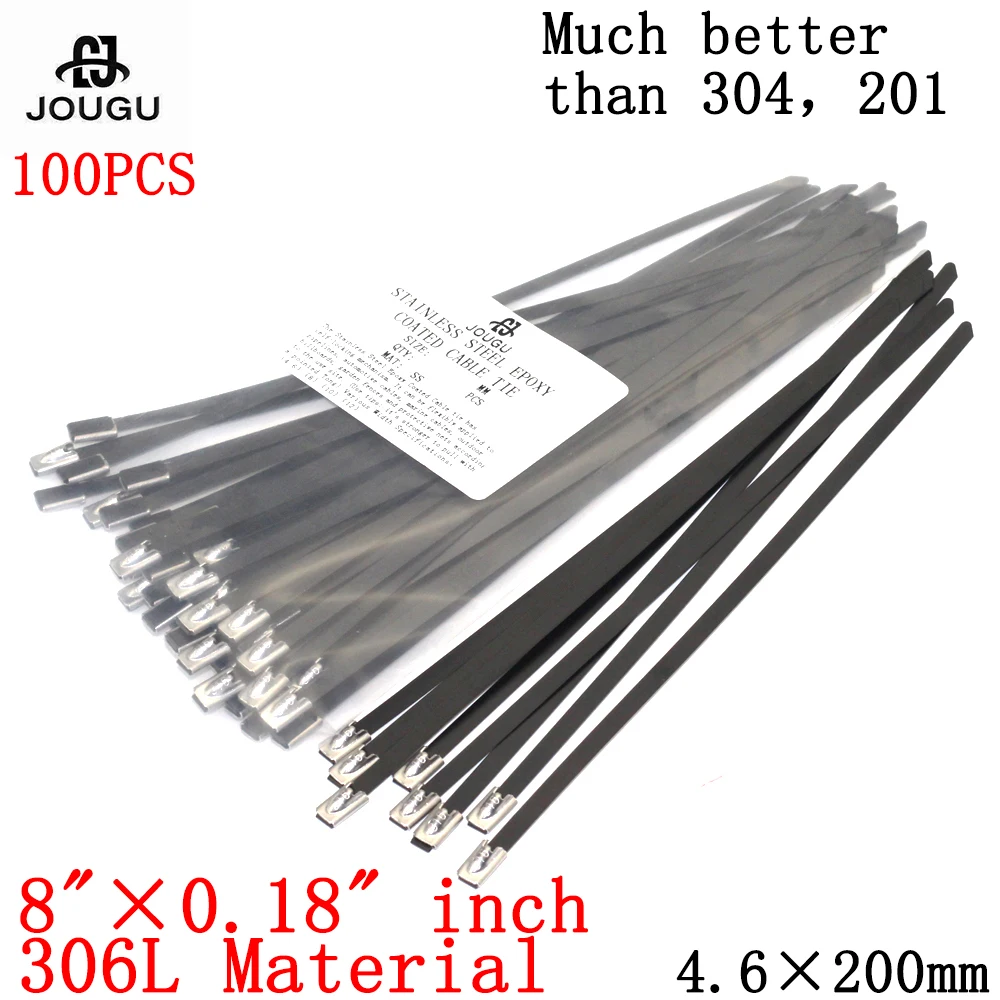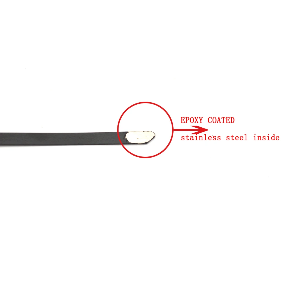 Стяжка для кабеля из нержавеющей стали, 100 шт., 4,6 200 мм, 316 материал, черная прочная металлическая стяжка морского класса с эпоксидным покрытием, стяжка-молния, стяжка, выхлопная стяжка