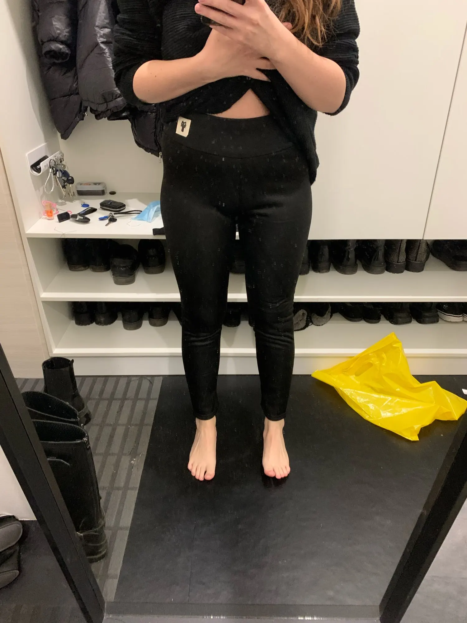 Я немного расстроена, т. к. это лосины, без джинсовой ткани как на первом фото в описании. Но остальных фото в описании действительно лосины, так что моя вина, что ожидала другого. С размером не угадала - на русский М взяла XL - еле влезла, полностью натянуть на область таза не получилось. Но действительно теплые. Приятная ткань изнутри, плюш.