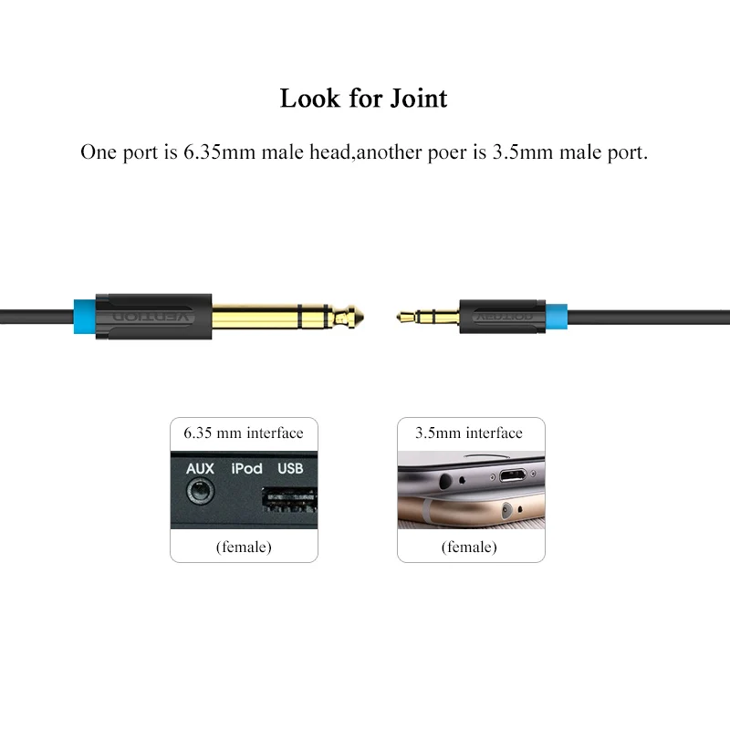 Vention 3,5 мм до 6,35 мм адаптер Aux кабель для усилителя смесителя Позолоченный 3,5 Jack до 6,5 Jack 3m 5m10mAux Кабо-папа Горячий