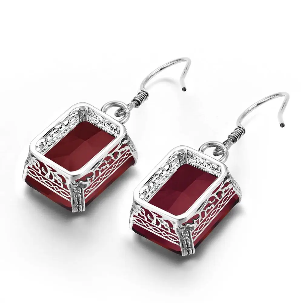 Тип камня: синтетический гранатЧеткость: VVSЦвет: темно-красныйФорма камня: квадратнаяМетод Создания камня: лабораторияМетод обработки камня: без обработкиТип металла: твердый 925 пробы серебристыйЦвет металла: античное сереброПроисхождение камня: SwiterlandУпаковка:1 * Серебряная полировальная ткань,1 * Изысканная Подарочная коробка,1 * пара драгоценных камней серьгиПримечание: (Мы отправляем товар в течение 48 часов после получения платежа)