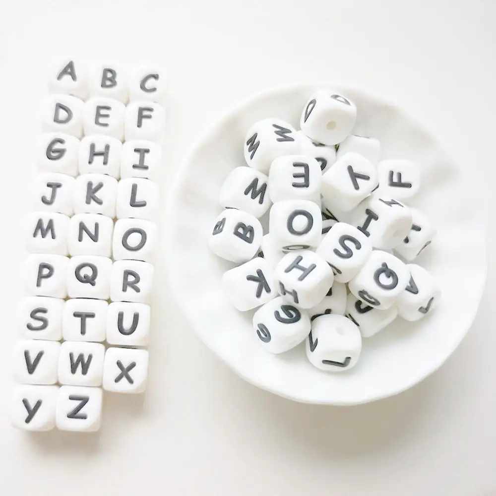 100 шт., силиконовые бусины с буквами английского алфавита, 12 мм, ...