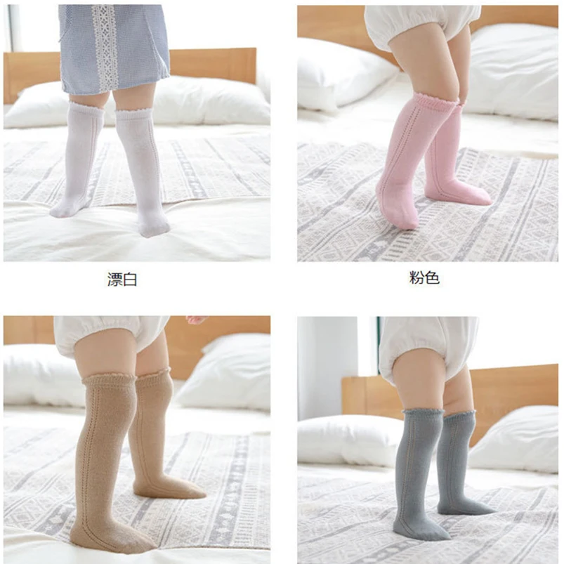 Кружевные носки с оборками для девочек, уютные сетчатые носки до колена для принцесс, ботиночки для малышей