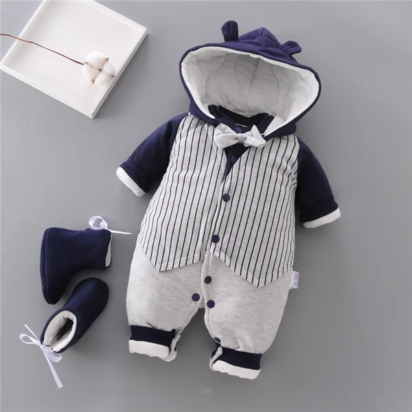 Зимний комбинезон с рисунком для маленьких мальчиков; Теплый комбинезон для малышей; Плотная одежда с капюшоном для малышей; Одежда для маленьких девочек; Комбинезоны для малышей
