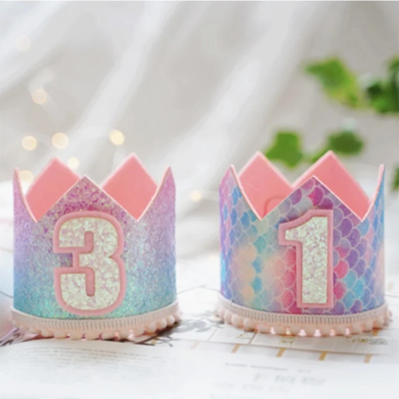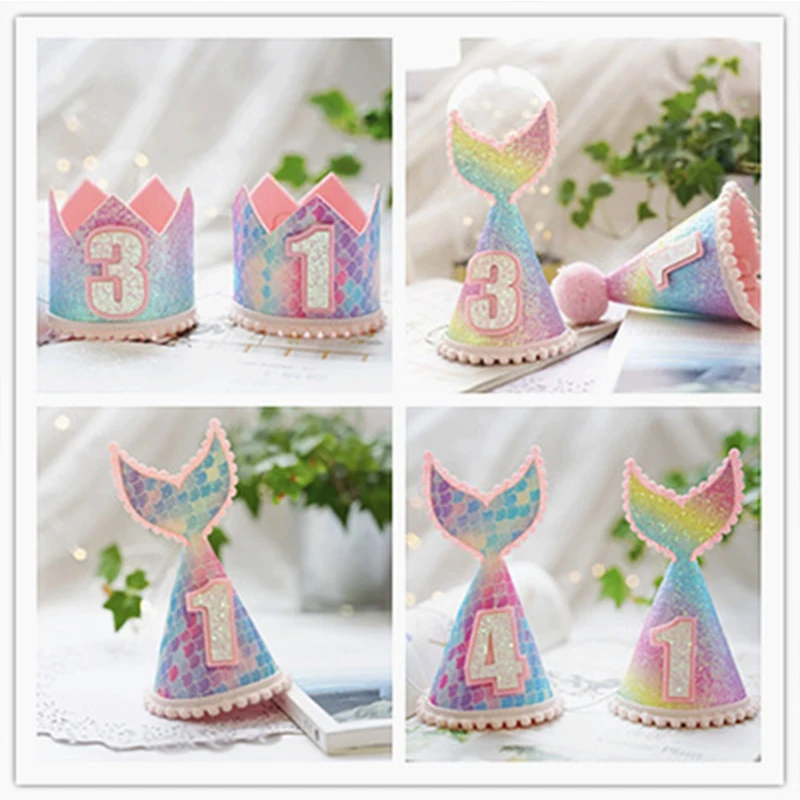 Детский наряд для дня рождения радуга крончатая крышка Симпатичные цветным боковым цифровым обозначением возраста с изображением хвоста русалки ободки принцесса вечерние украшения детский душ Вечерние