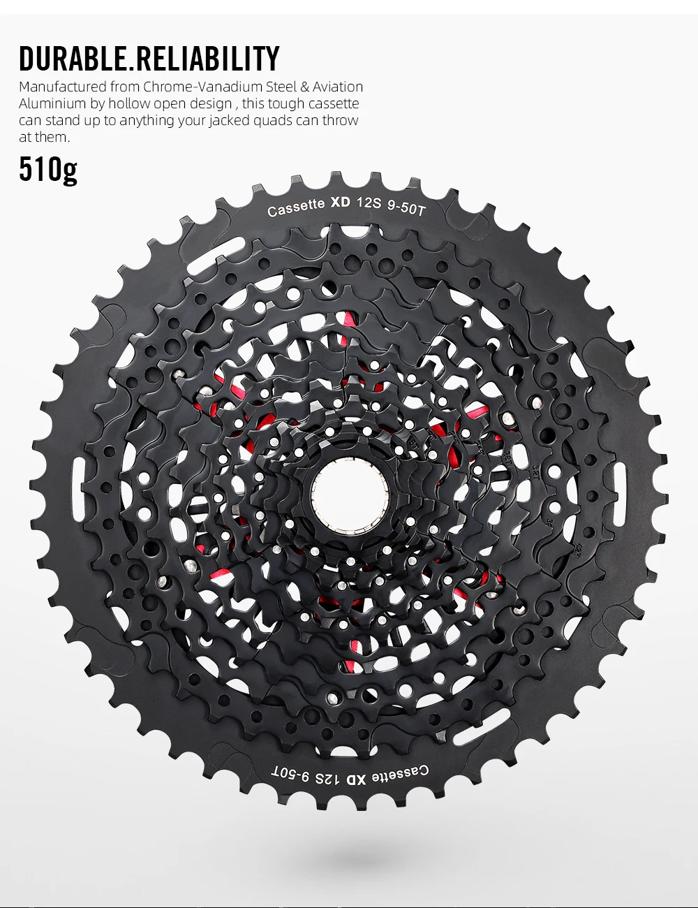 Кассета RYET MTB 9-50T, кассета XD, черная кассета 535 г, 9-50, кассета 12 s, кассета k7 12 s, кассета и цепь X12SLChain