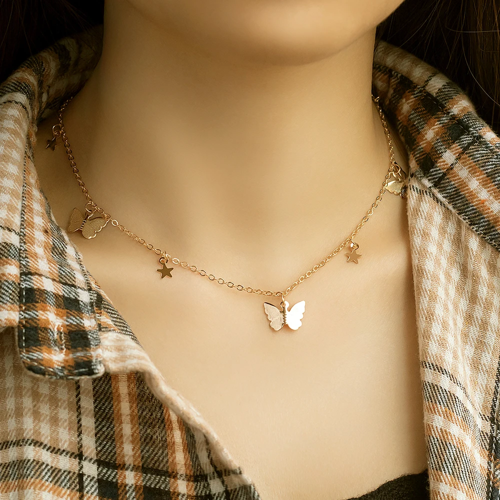 Чокер X P в богемном стиле Женский, милое ожерелье-бабочка из акрила золотистого цвета, колье до ключиц, бижутерия, 2020