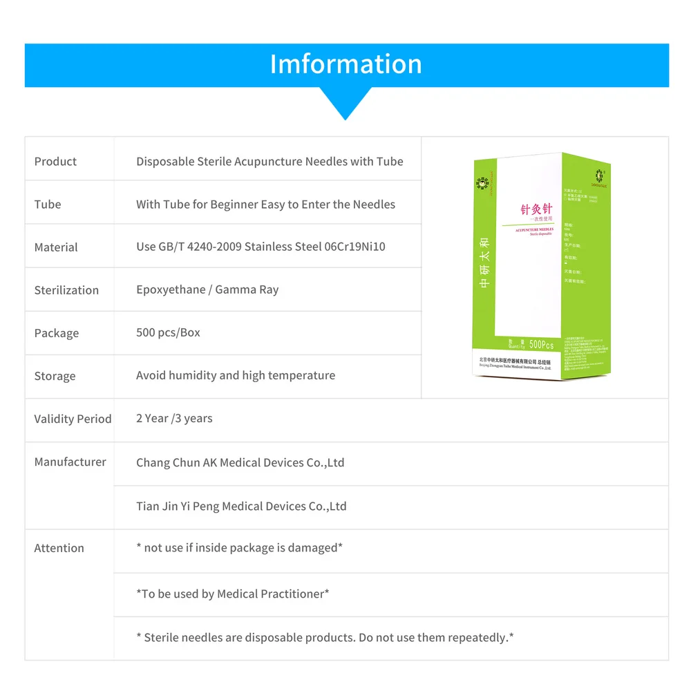 Продукт: Одноразовая Стерильная Акупунктура Zhongyan Taihe