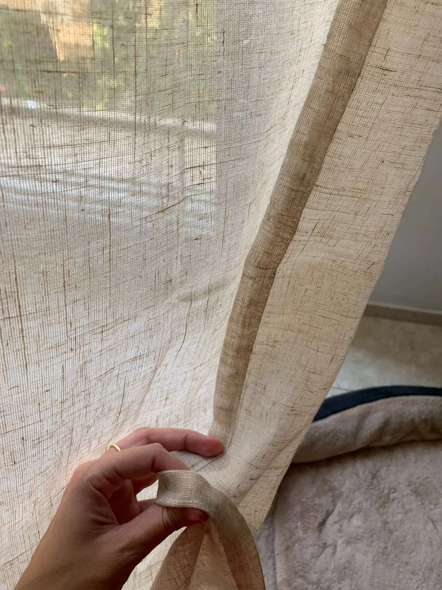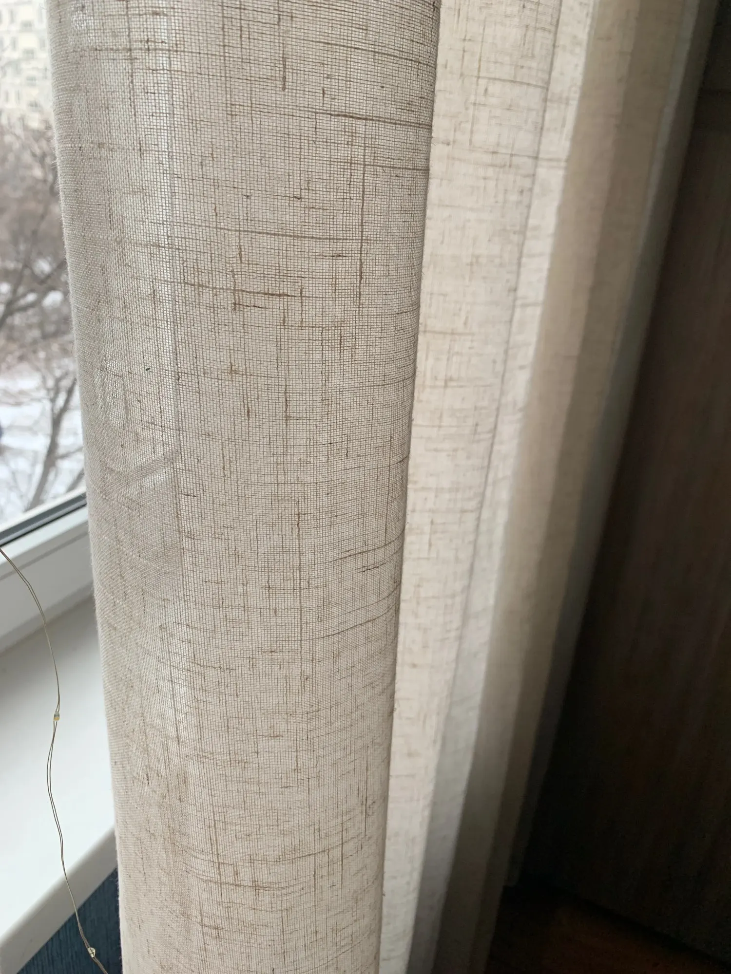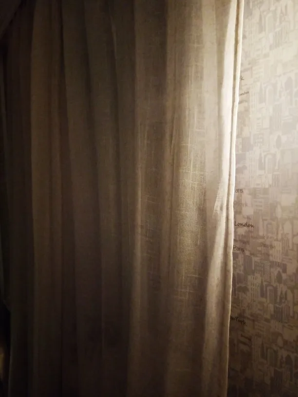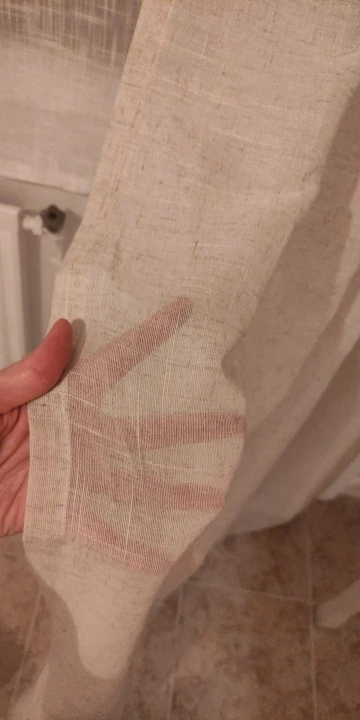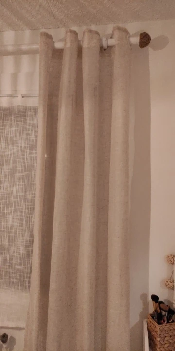 Занавеска немного менее Толстая (менее льняная), чем я ожидала, и она не представляла себе из-за очень положительных комментариев. Однако она остается очень красивой занавеской!