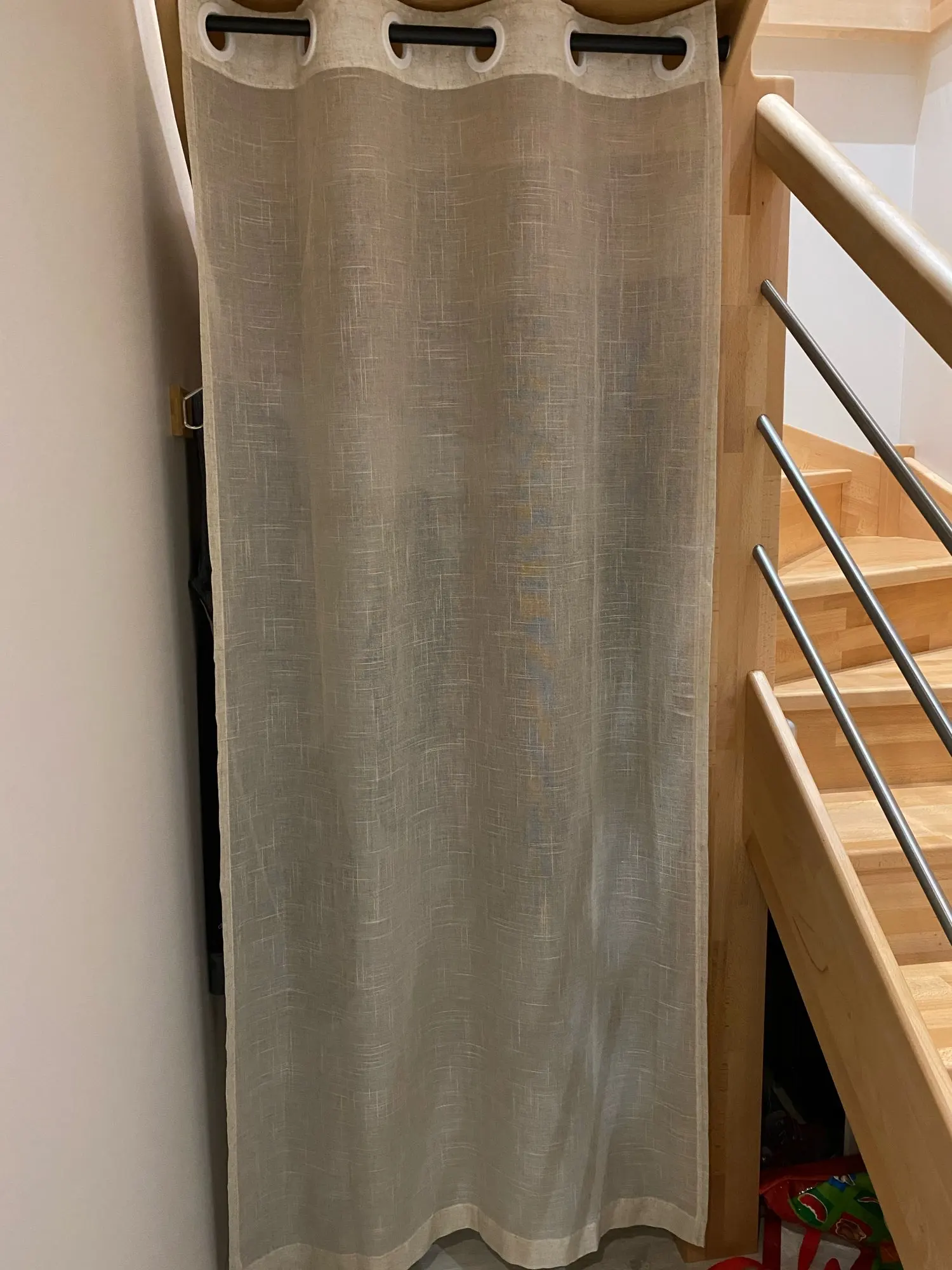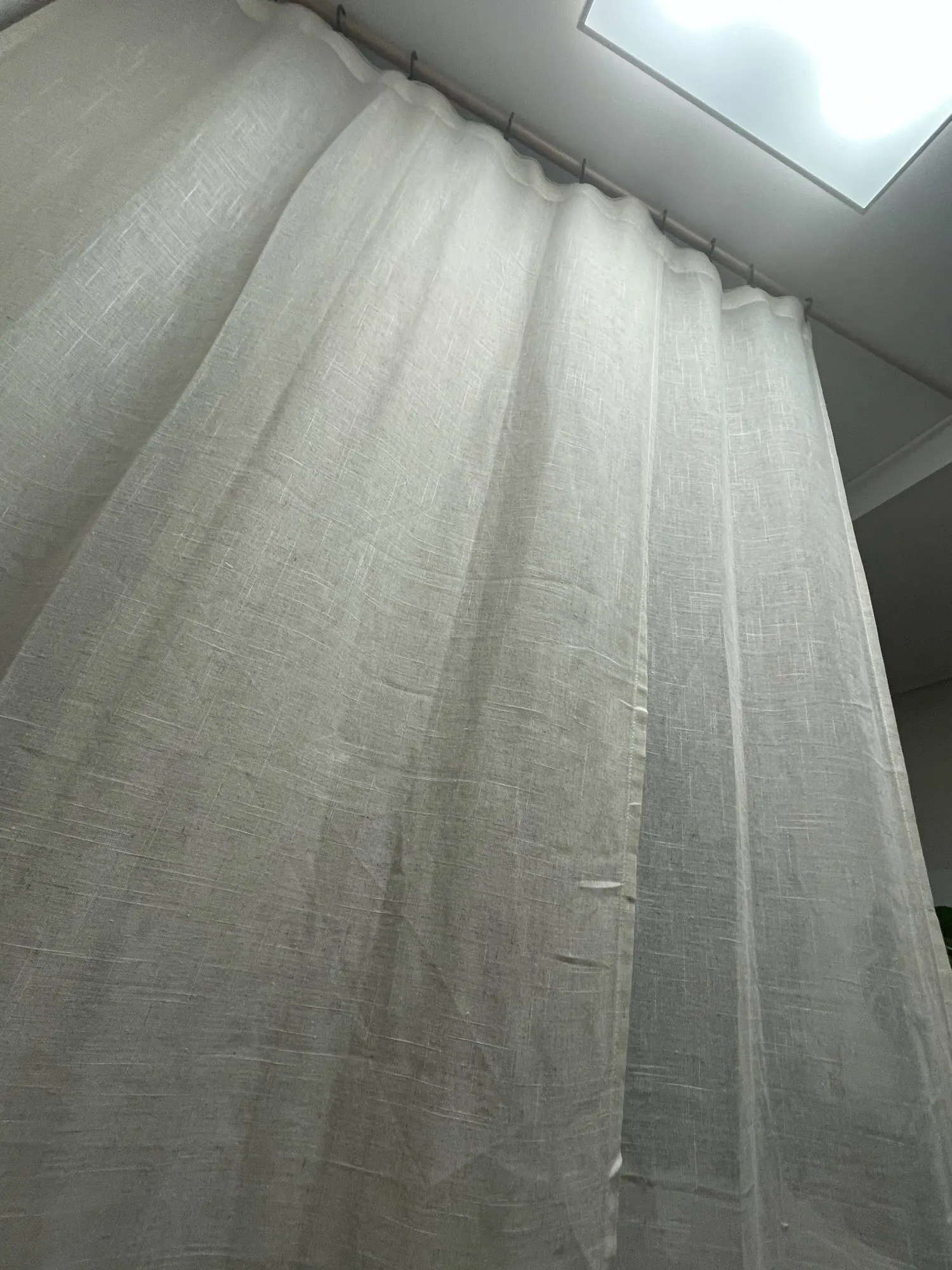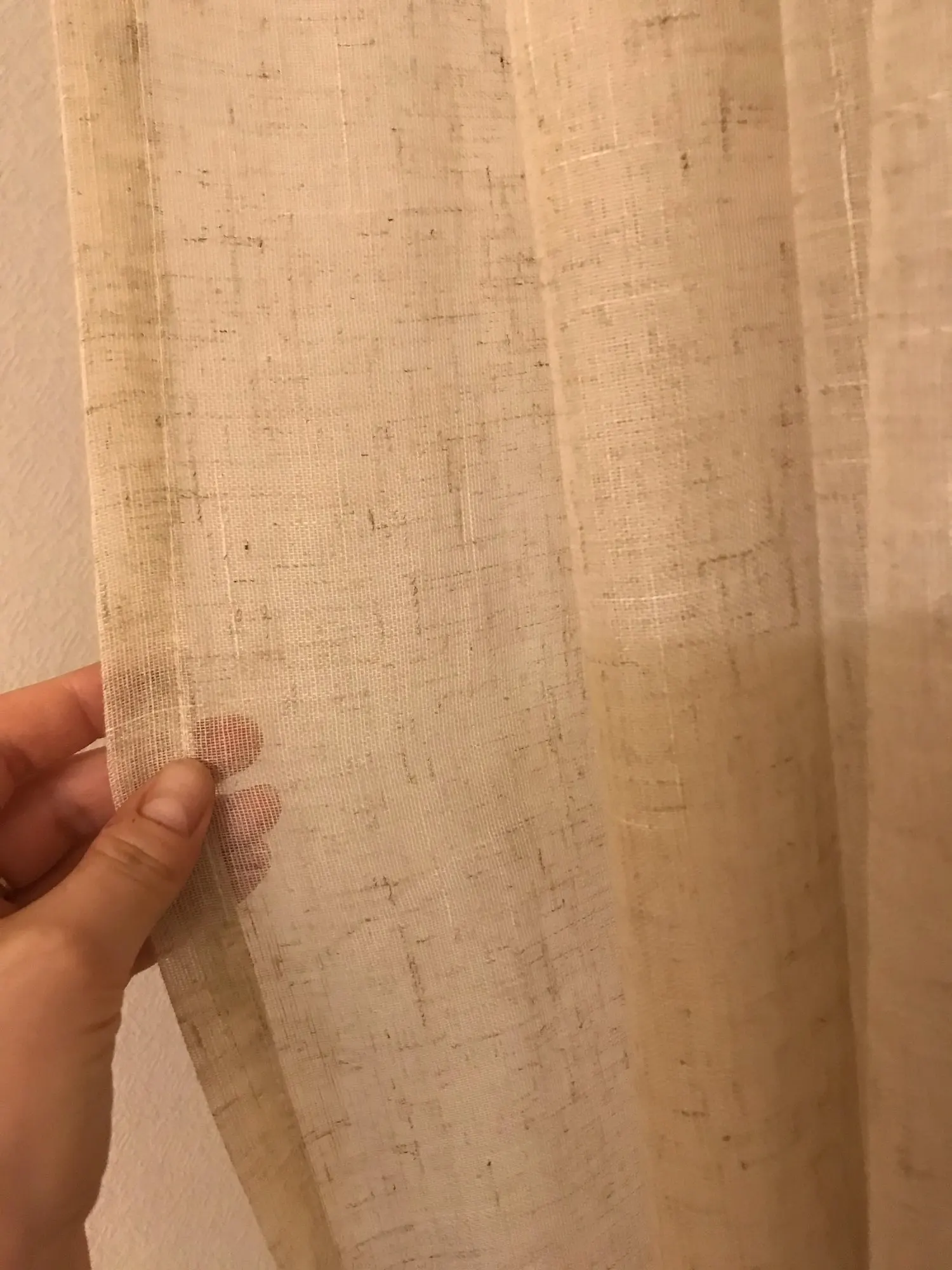 Занавеска немного менее Толстая (менее льняная), чем я ожидала, и она не представляла себе из-за очень положительных комментариев. Однако она остается очень красивой занавеской!