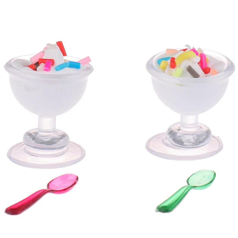 1-5 шт. миниатюрные игрушки для кукольного мини-домика, мягкие мини-чашки для мороженого, ложка-брусок, имитация мороженого, еда для кукол, аксессуары