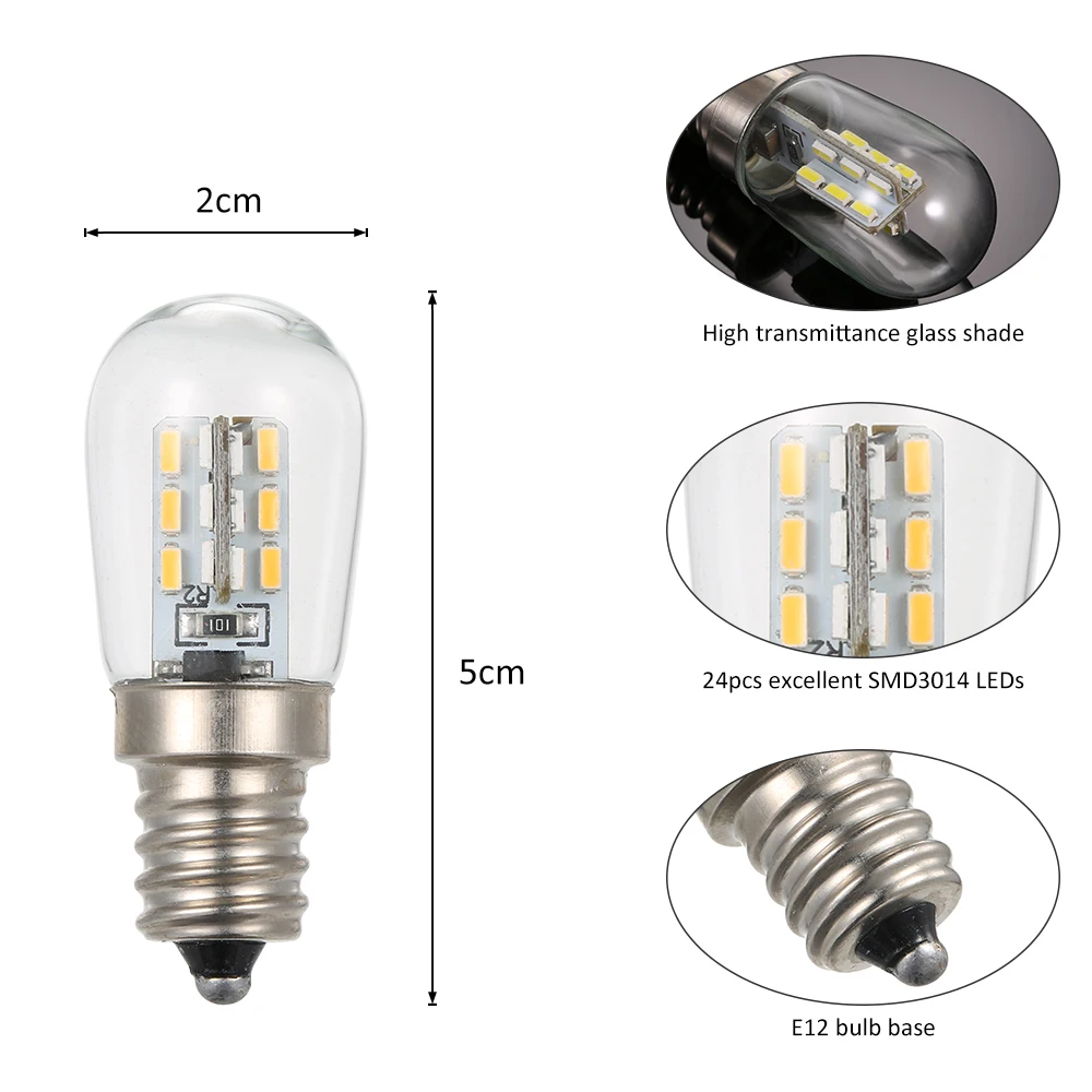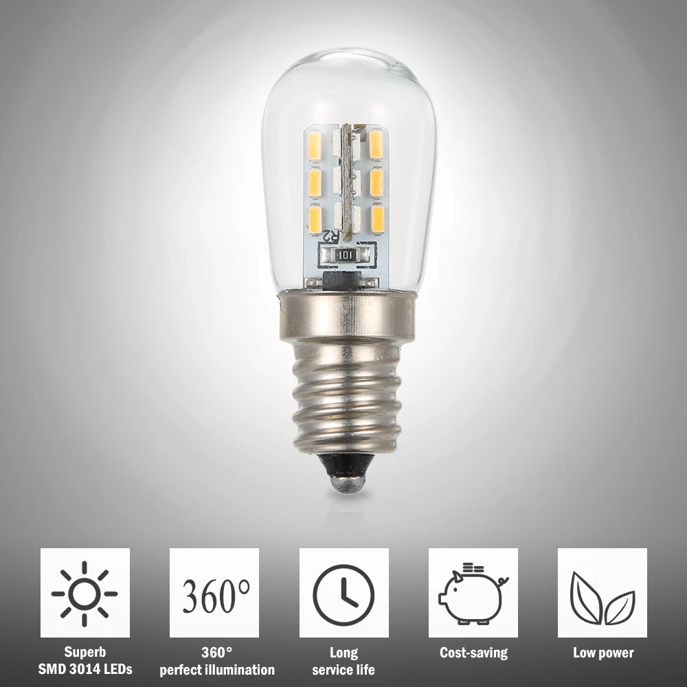 Светодиодный мини-светильник для холодильника, 220 В переменного тока, лампа для холодильника E12, цоколь лампы, держатель SMD3014