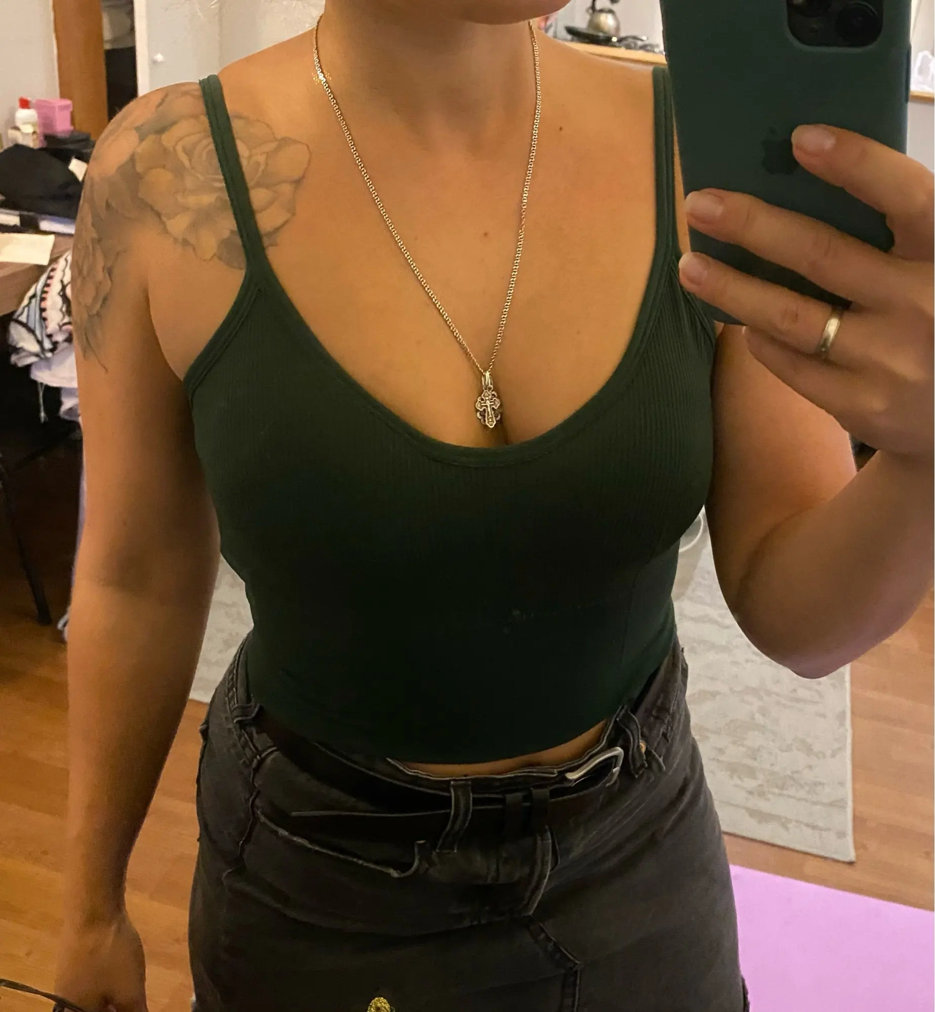 Хорошее качество, хорошо сделано, один размер не подходит всем, что они свернули в нижней части из-за моей толщины. Однако моя дочь-подросток любит их, бюстгальтер? Нет, она будет носить их как топ!