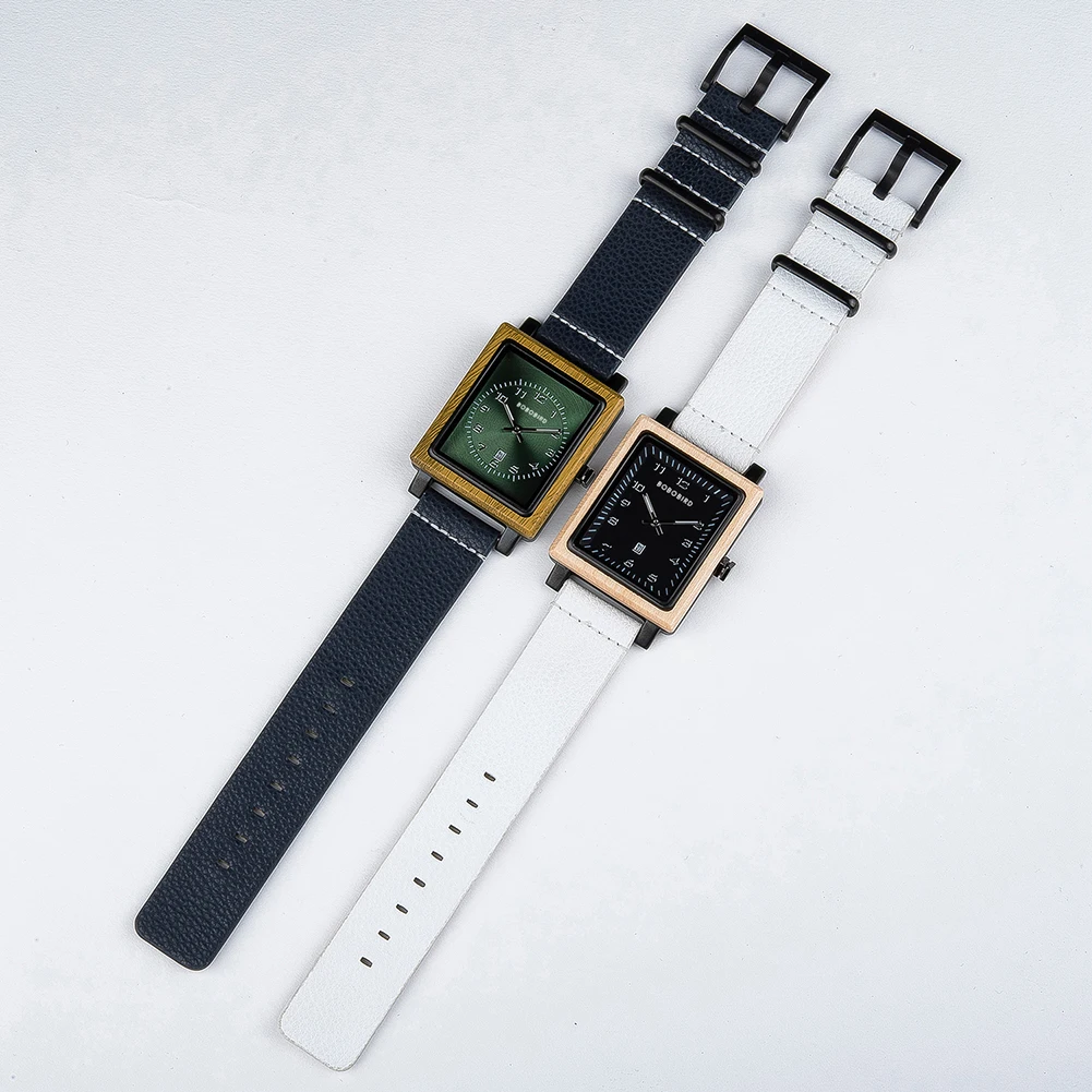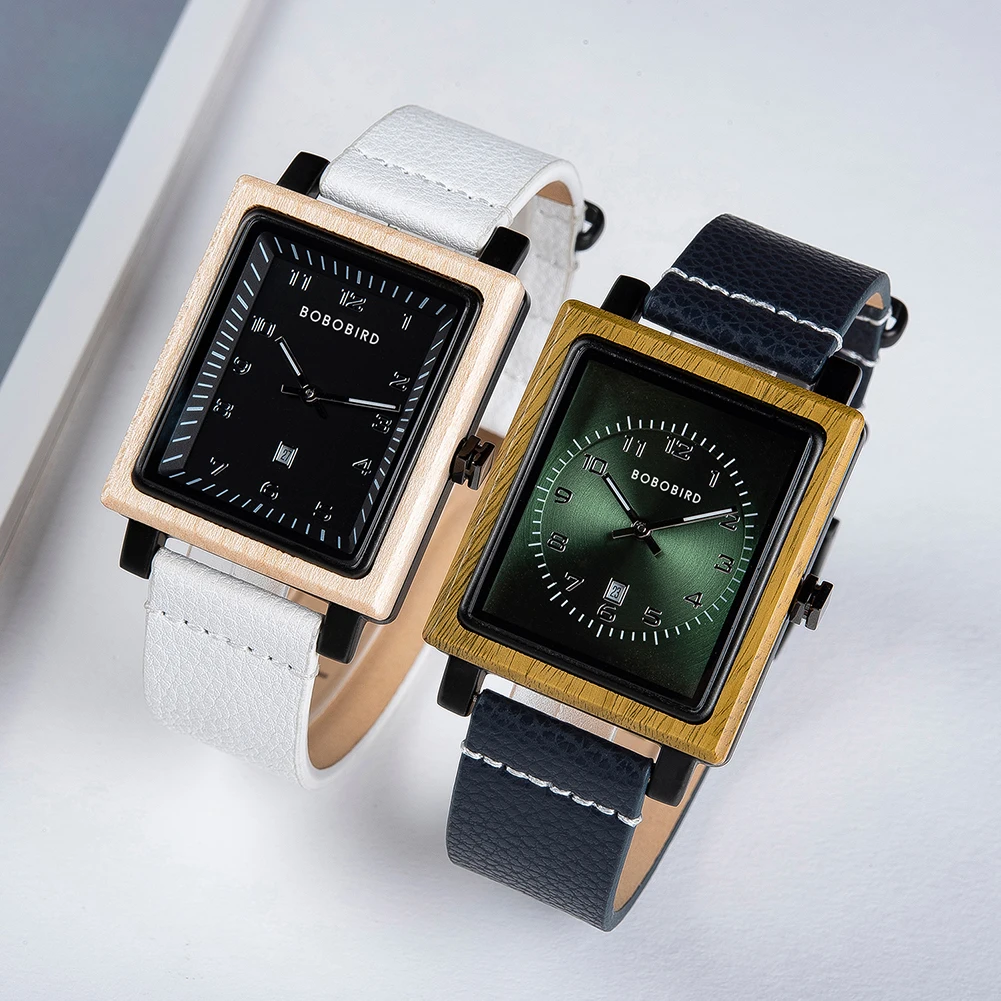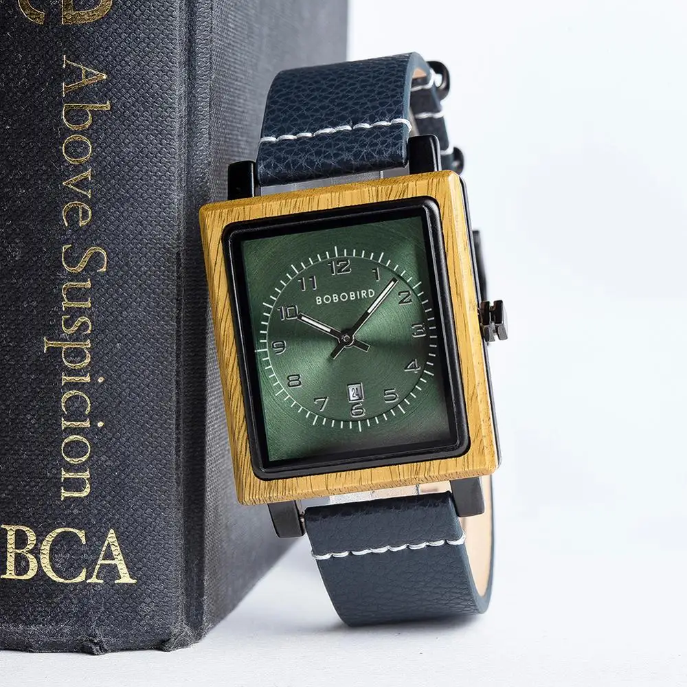 BOBO BIRD, деревянные мужские кварцевые часы с квадратным циферблат...