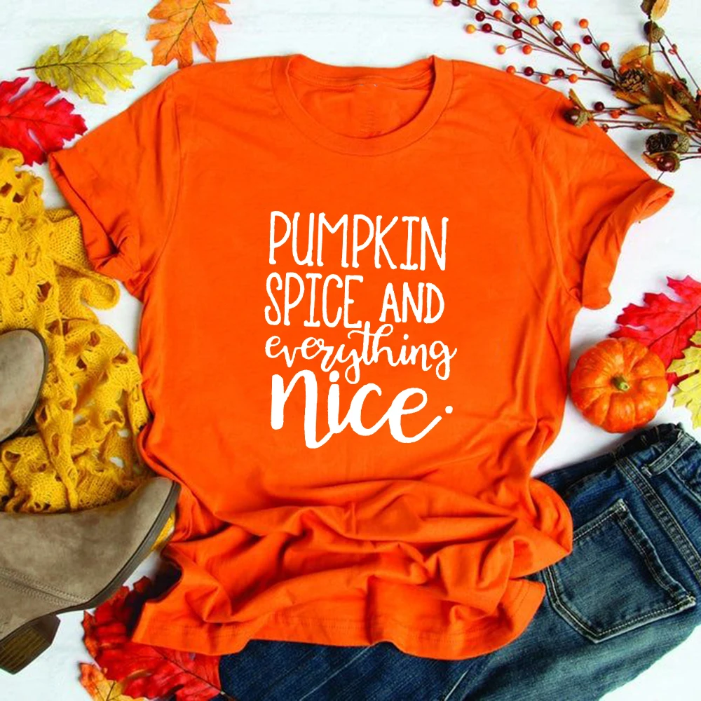 Женская футболка на Хэллоуин 2020, футболки с круглым вырезом и принтом тыквы, специй и Всего хорошего, оранжевые винтажные топы, женские футболки