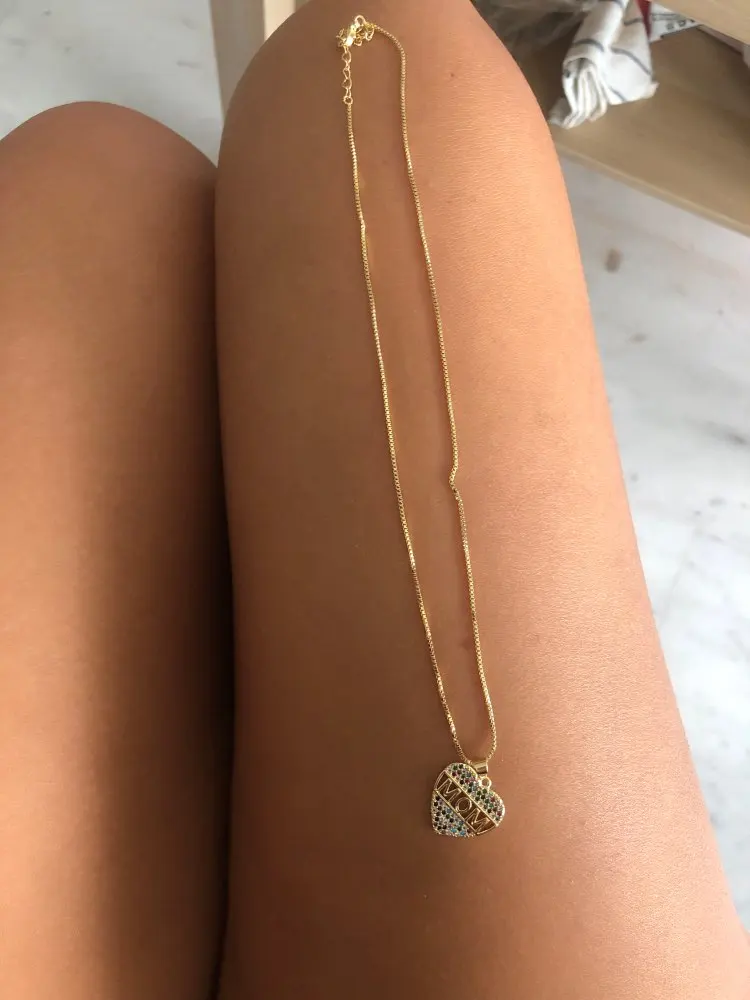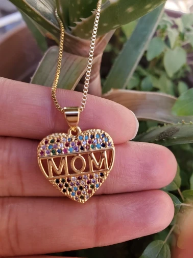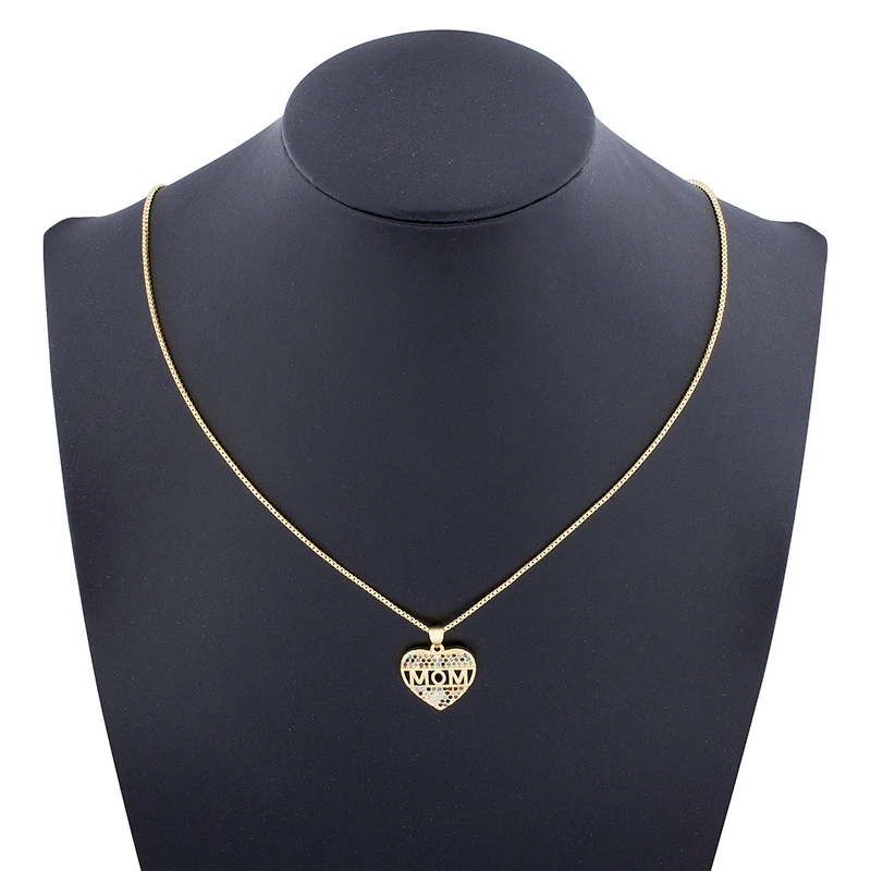 Модные яркие мама с кубическим цирконием в форме сердца ожерелье кулон ювелирные украшения для женщин Длинная цепочка-змейка подарок на день матери